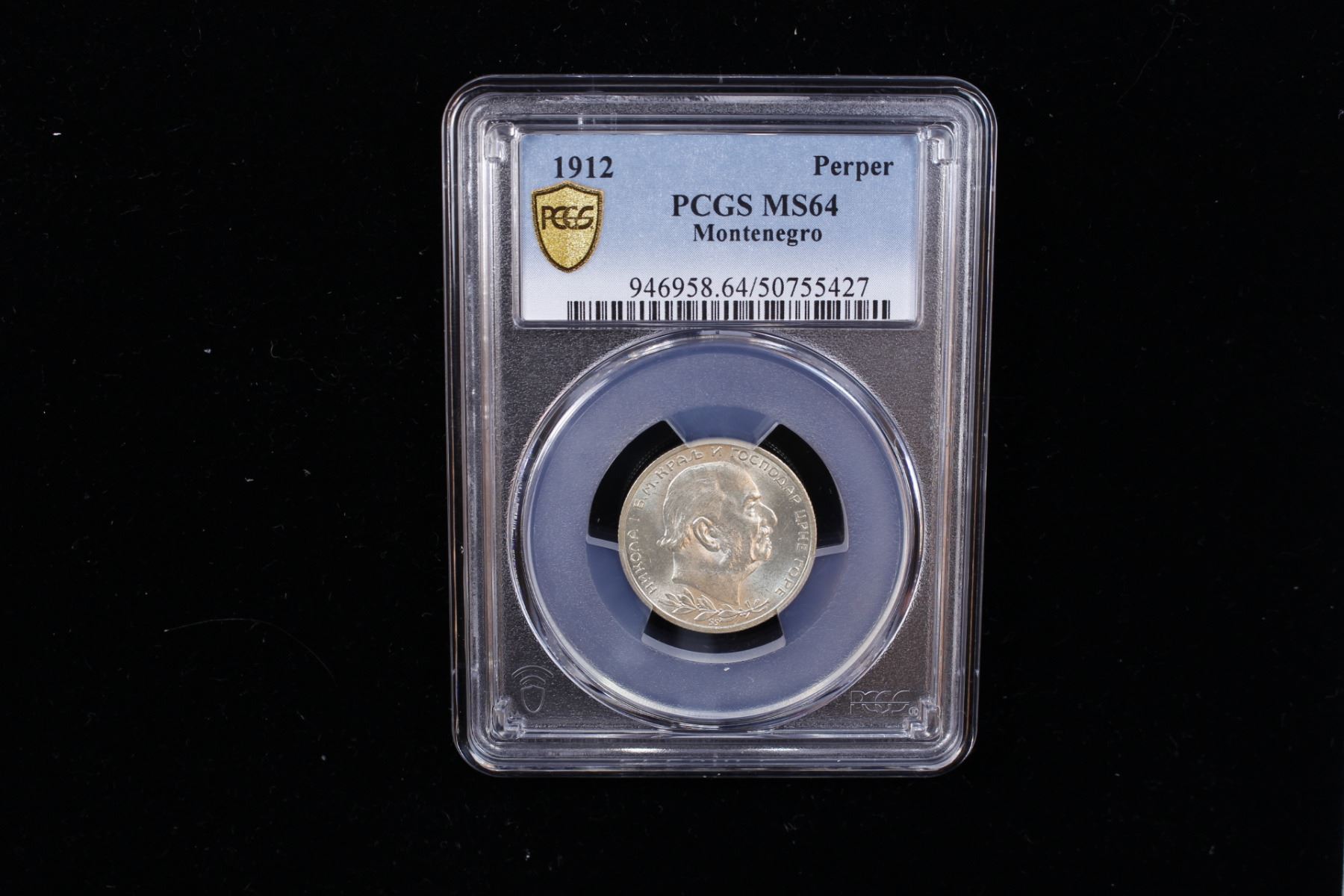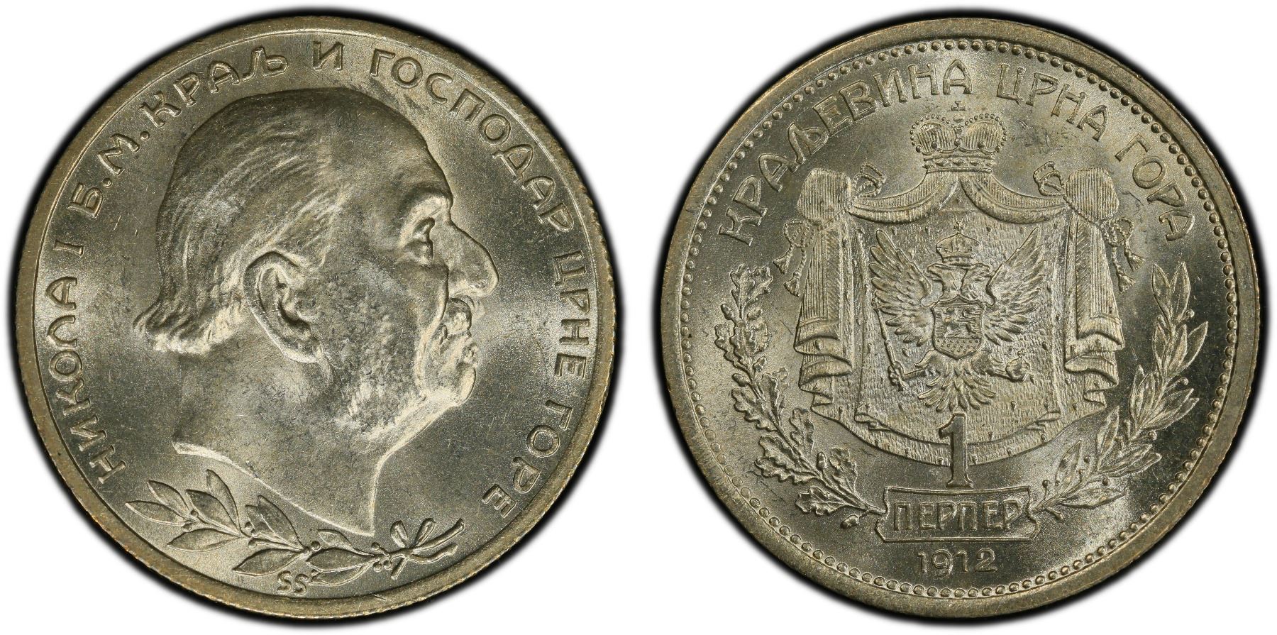 MONTENEGRO: Nicholas I, 1910-1918, AR perper, 1912, KM-14, superb bright luster, very attractive, PCGS graded MS64. Tied with only one other coin for finest graded at PCGS (Top Pop).