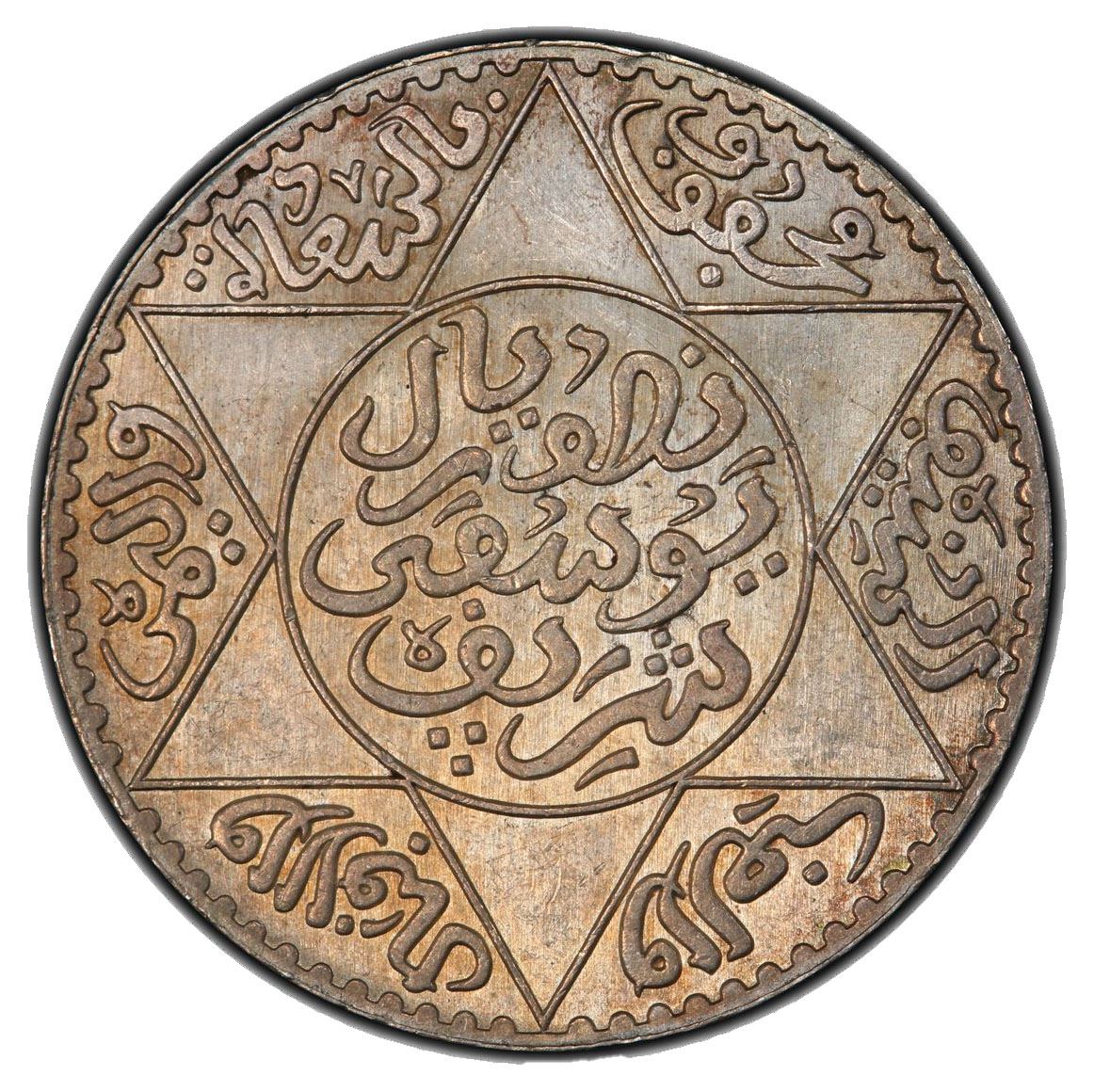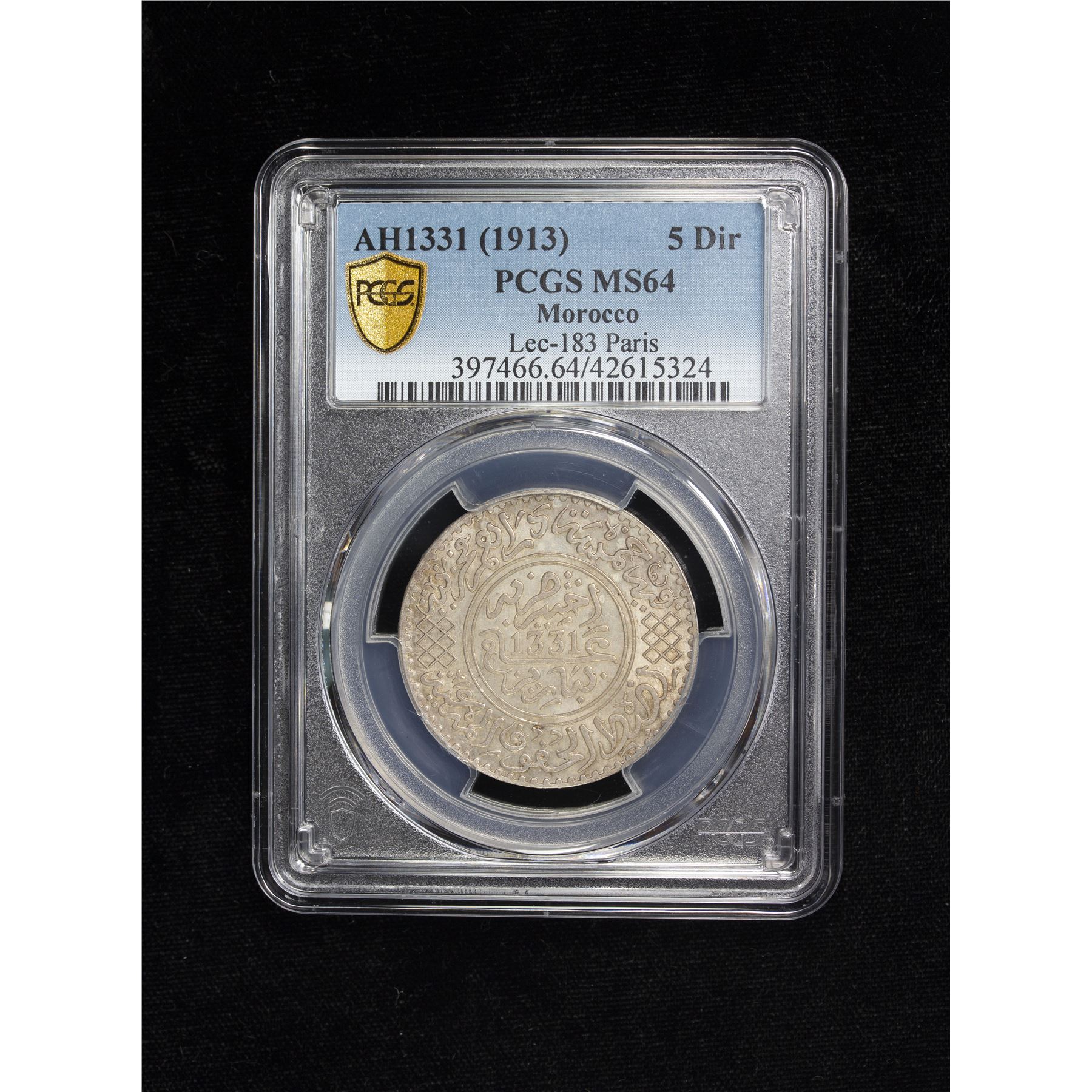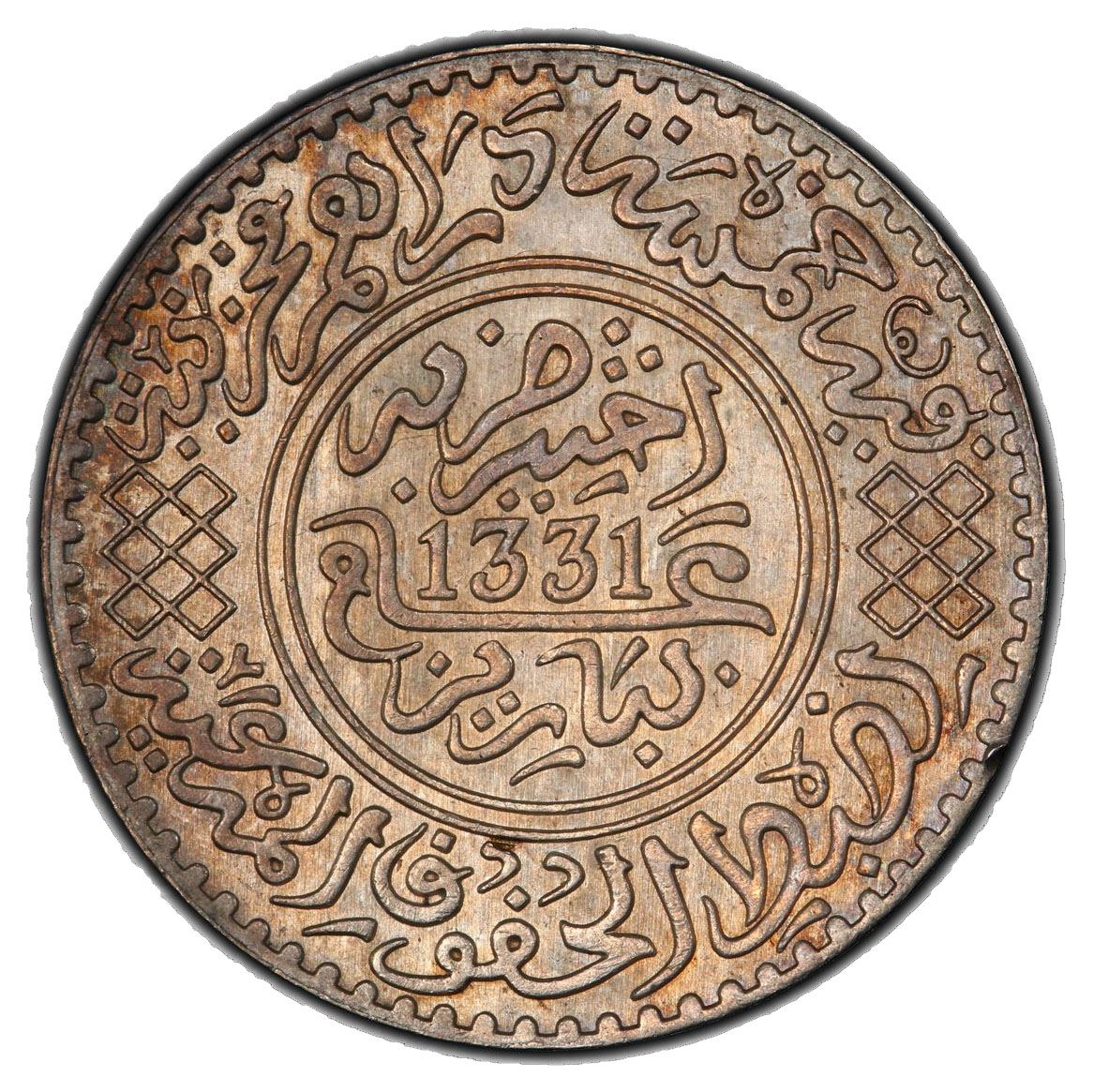 MOROCCO: Yusuf, 1912-1927, AR 5 dirhams, Paris, AH1331, PCGS MS64