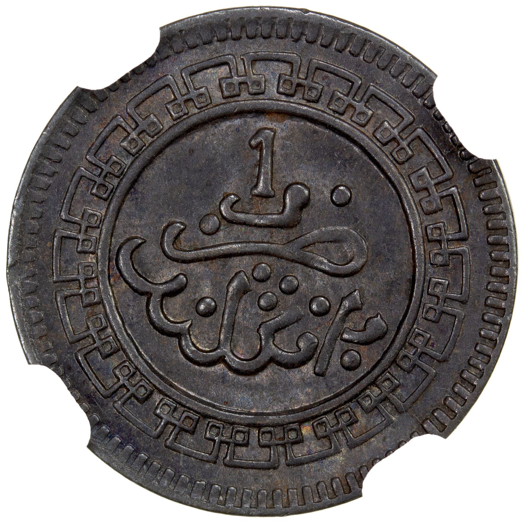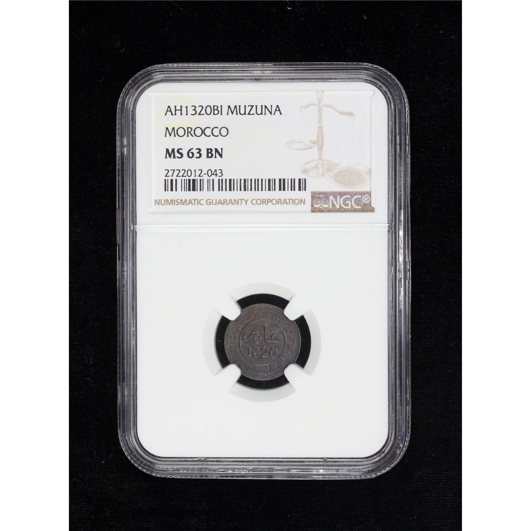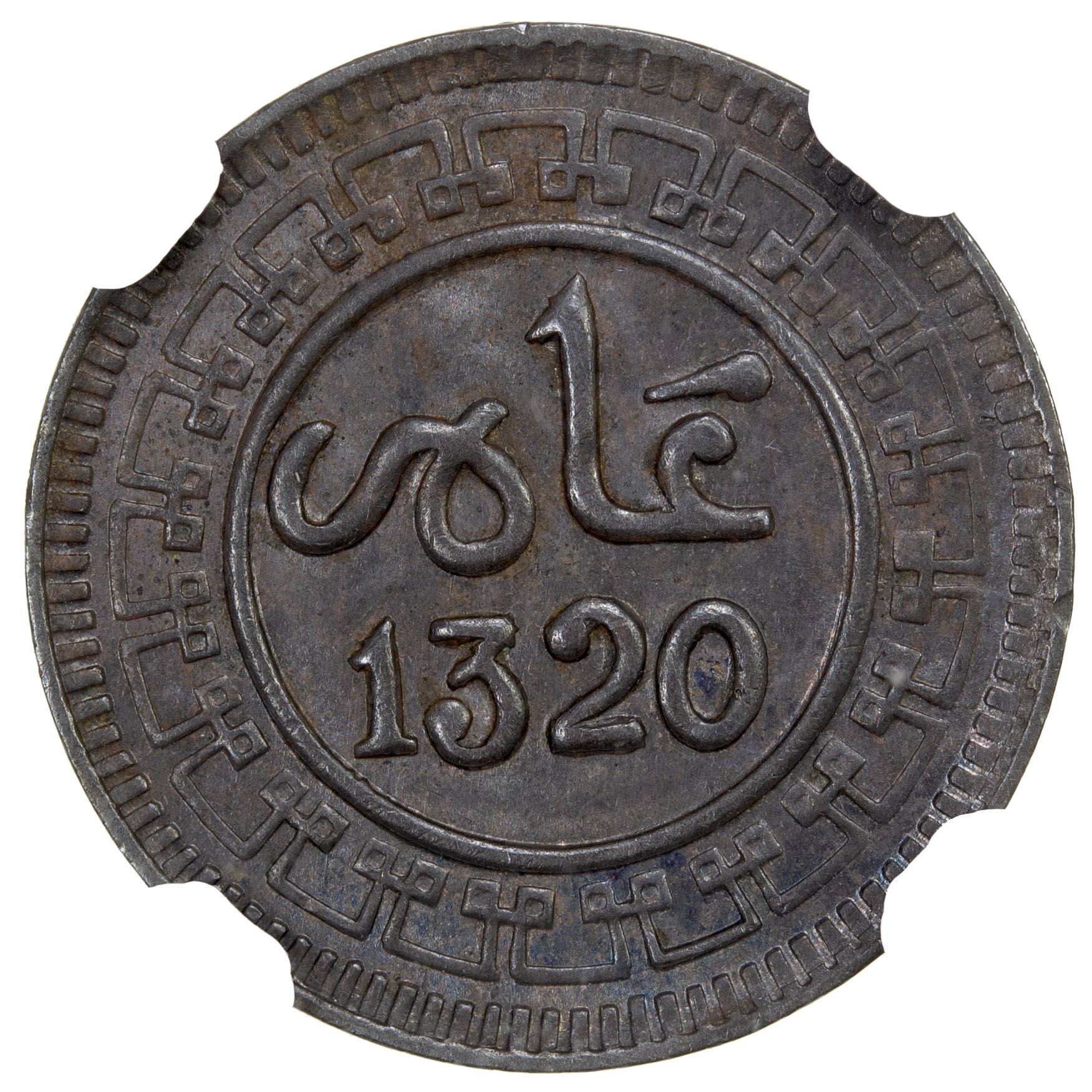 MOROCCO: Yusuf, 1912-1927, muzuna, Birmingham, AH1320, KM-14.2, Lec-23, only 2 graded higher, NGC graded MS63 BN.