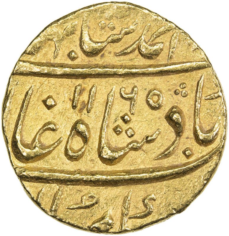 MUGHAL: Ahmad Shah Bahadur, 1748-1754, AV mohur (11.01g), Multan, AH1165 year 5, KM-449.10, bold strike, choice EF, ex Ajit Singh Collection.