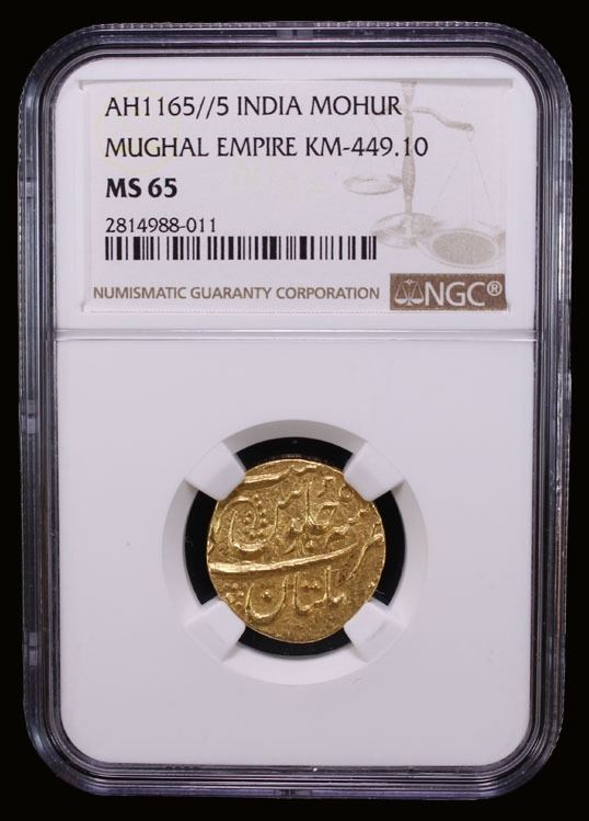 MUGHAL: Ahmad Shah Bahadur, 1748-1754, AV mohur, Multan, AH1165 year 5, KM-449.10, scarce mint for gold, NGC graded MS65, R.