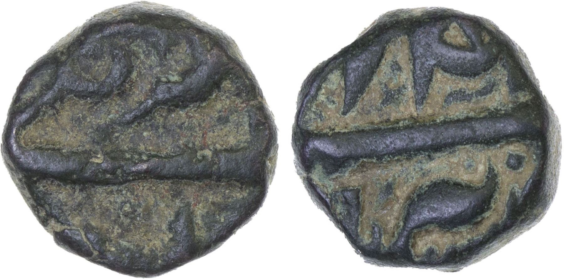 MUGHAL: Akbar I, 1556-1605, AE 1/4 dam (damra) (4.86g), Berar, ND, KM-16.6, attractive F-VF, RR.