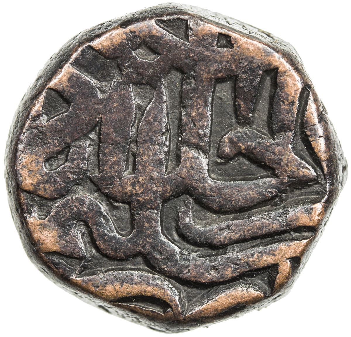 MUGHAL: Akbar I, 1556-1605, AE dam (20.50g), Salimabad, AH982, KM-28.46, mint epithet Dar al-Khilafa, rare mint, VF-EF, R, ex M.H. Mirza Collection.