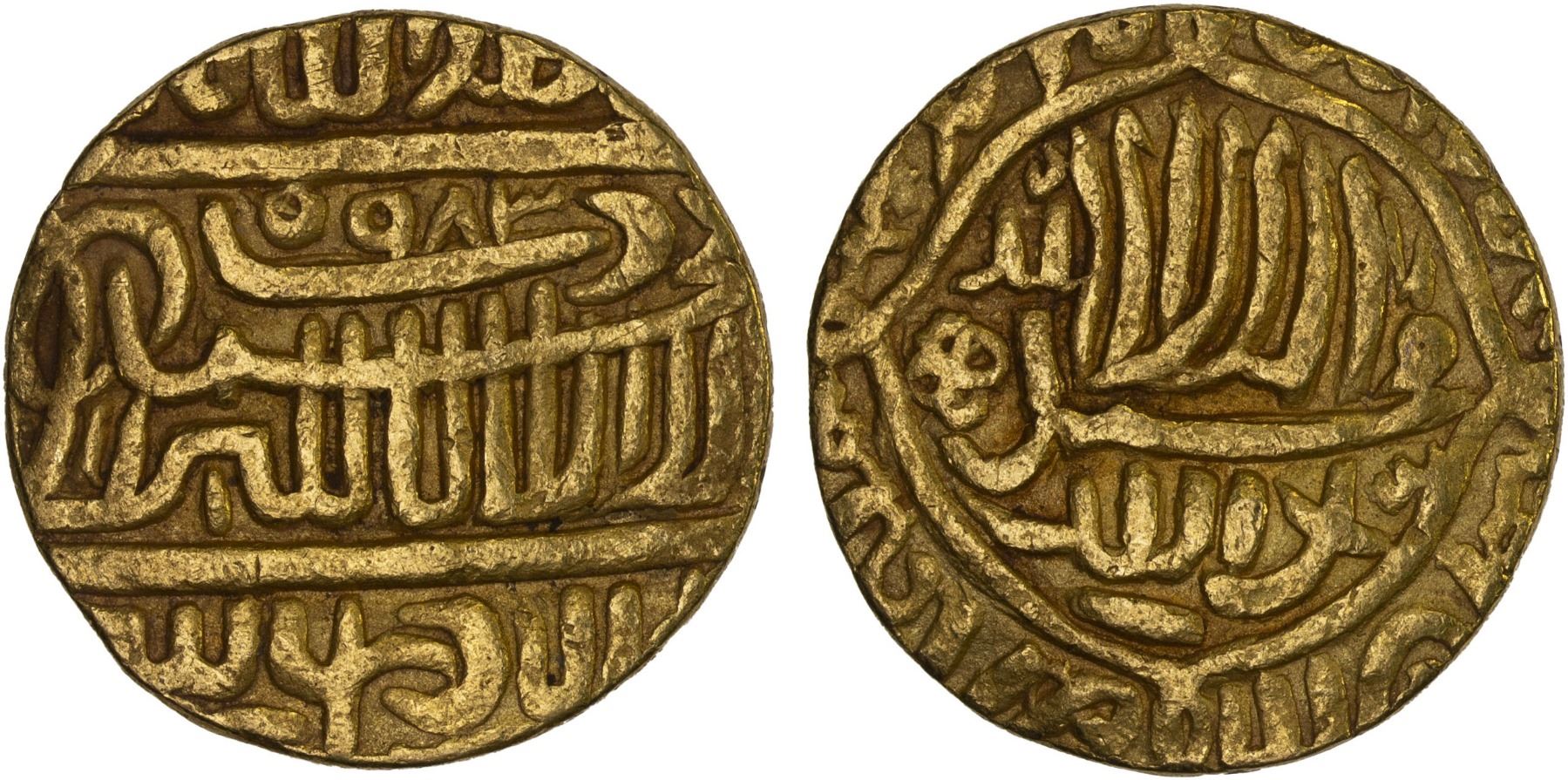MUGHAL: Akbar I, 1556-1605, AV tanka (10.80g), NM, AH983, early imitation of the Lahore mint type KM-106.4, dated AH983 but probably struck much later, late 16th or through the 17th century, VF, ex Syed Rabbi Collection.