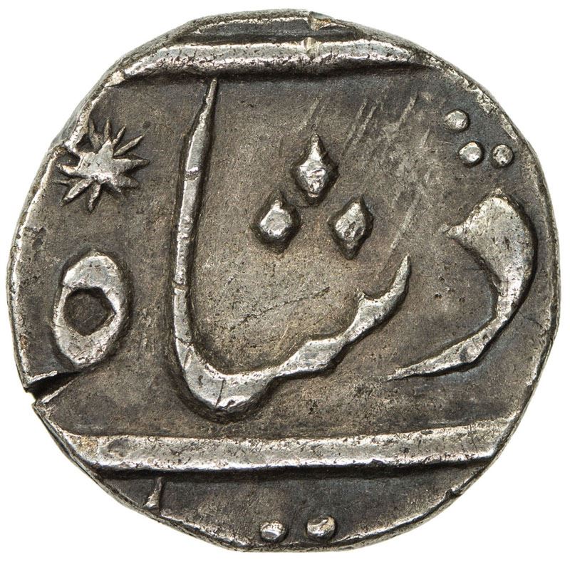 MUGHAL: Alamgir II, 1754-1759, AR ¼ rupee (2.87g) (Murshidabad), year 3, KM-452.2, sunburst on obverse, superb strike, tiny test-cut at the rim, choice EF, R, ex Paul Stevens Collection. The East India Company mint was opened at Calcutta in year 4 of Alamgir II, and struck coins with the mint name kalkata together with the same sunburst and text arrangement as the Mughal issues struck by authority of the Nawab of Bengal at the Murshidabad mint, also in the name of Alamgir II. As is clear from the rupees, the Murshidabad and Calcutta issues can only be securely distinguished when the mint name is visible, but this is virtually never the case on the fractions. Stevens has suggested that the apparent increased production of the fractions might indicate that some were indeed struck at Calcutta. See his book The Coins of the Bengal Presidency, pp. 9-15, for a detailed discussion of this complexity.