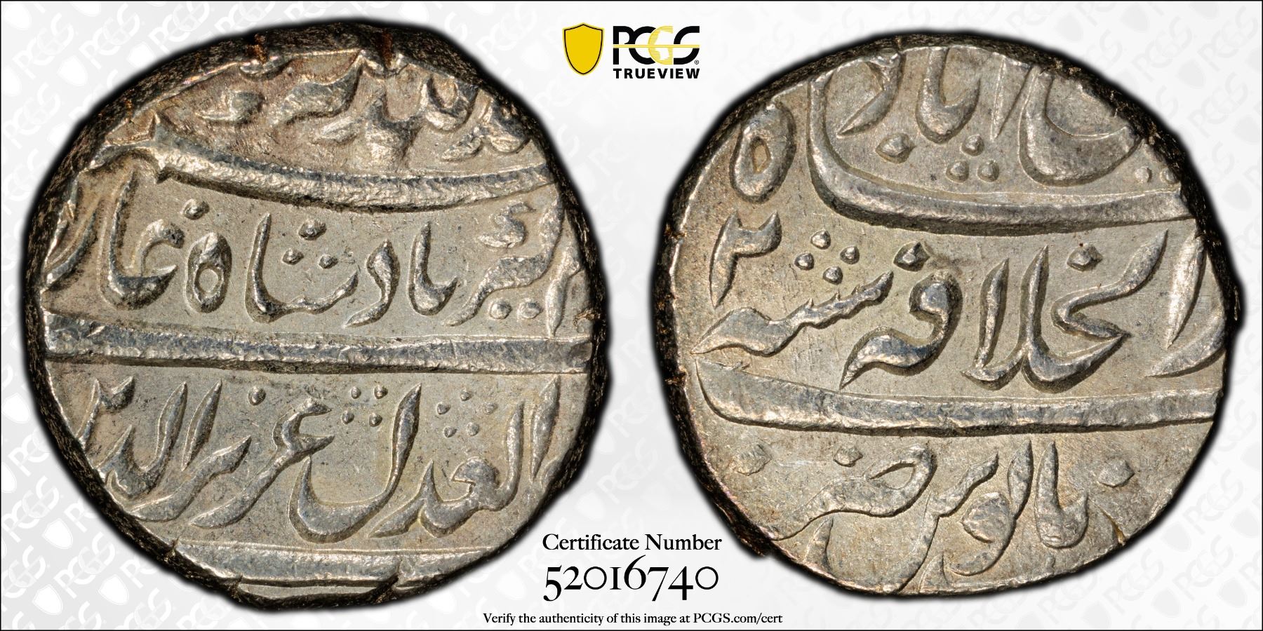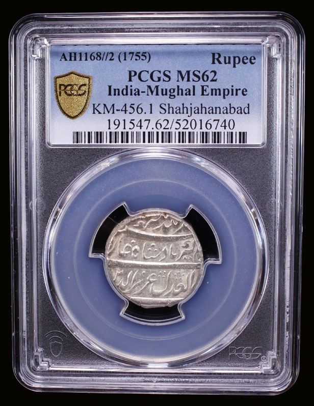 MUGHAL: Alamgir II, 1754-1759, AR rupee (11.34g), Shahjahanabad, AH(116)8 year 2, KM-456.1, a pleasing mint state example, PCGS graded MS62.