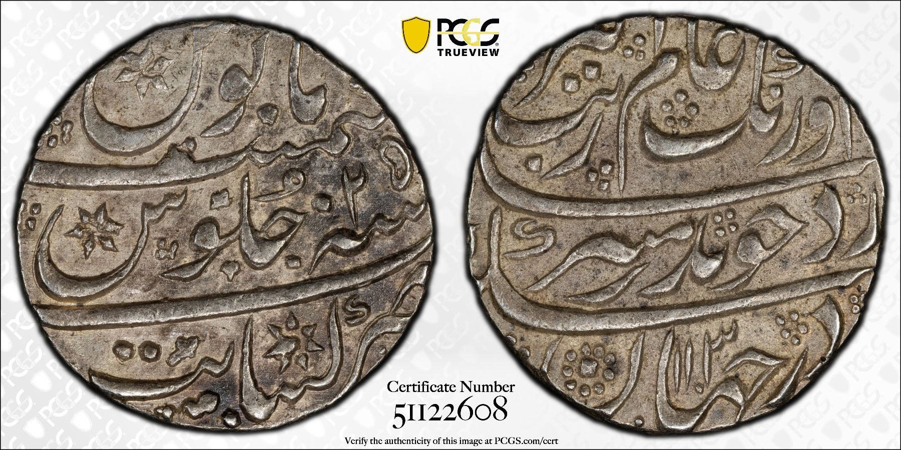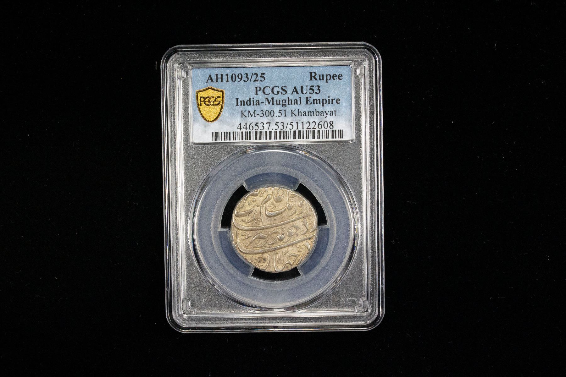 MUGHAL: Aurangzeb, 1658-1707, AR rupee (11.19g), Kanbayat, H1103 year 25, KM-300.51, PCGS graded AU53