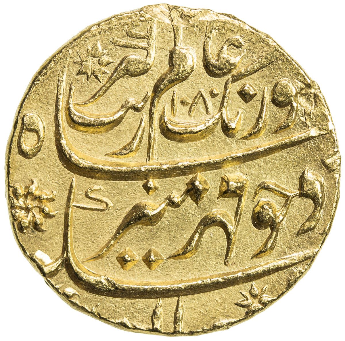 MUGHAL: Aurangzeb, 1658-1707, AV mohur (10.98g), AH1080 year 12, KM-315.10, fantastic bold strike with bright original mint luster, Unc.