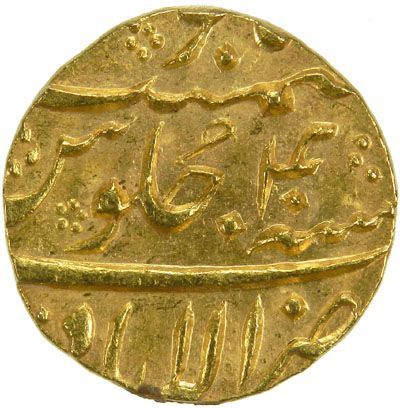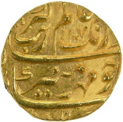 MUGHAL: Aurangzeb, 1658-1707, AV mohur (11.10g), Allahabad, AH1107 year 40, KM-315.9, bold strike, choice About Uncirculated.