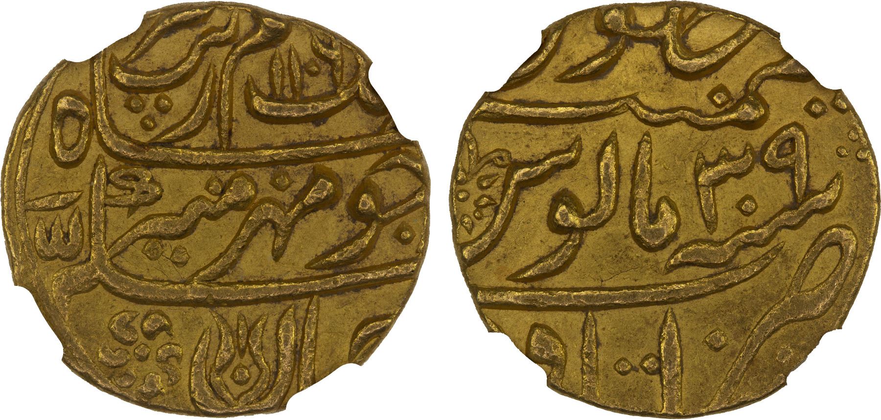 MUGHAL: Aurangzeb, 1658-1707, AV mohur, Itawa, AH1106 year 39, NGC AU55