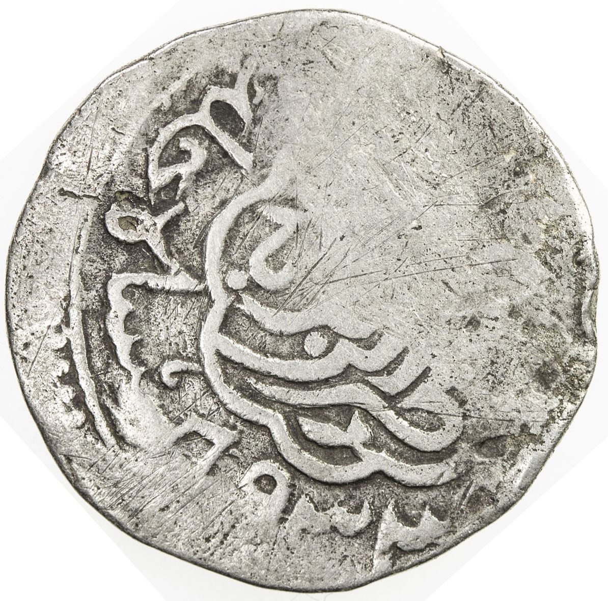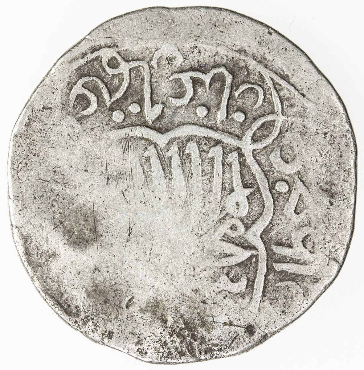 MUGHAL: Babur, 1504-1530, AR shahrukhi (4.57g), NM, AH"933", Rahman-51 (probably same dies), the date 933 is die-cutter's error for 913 (reason described in detail by Rahman), about 35% flat strike, as seems to be standard for this type, F-VF, RR.