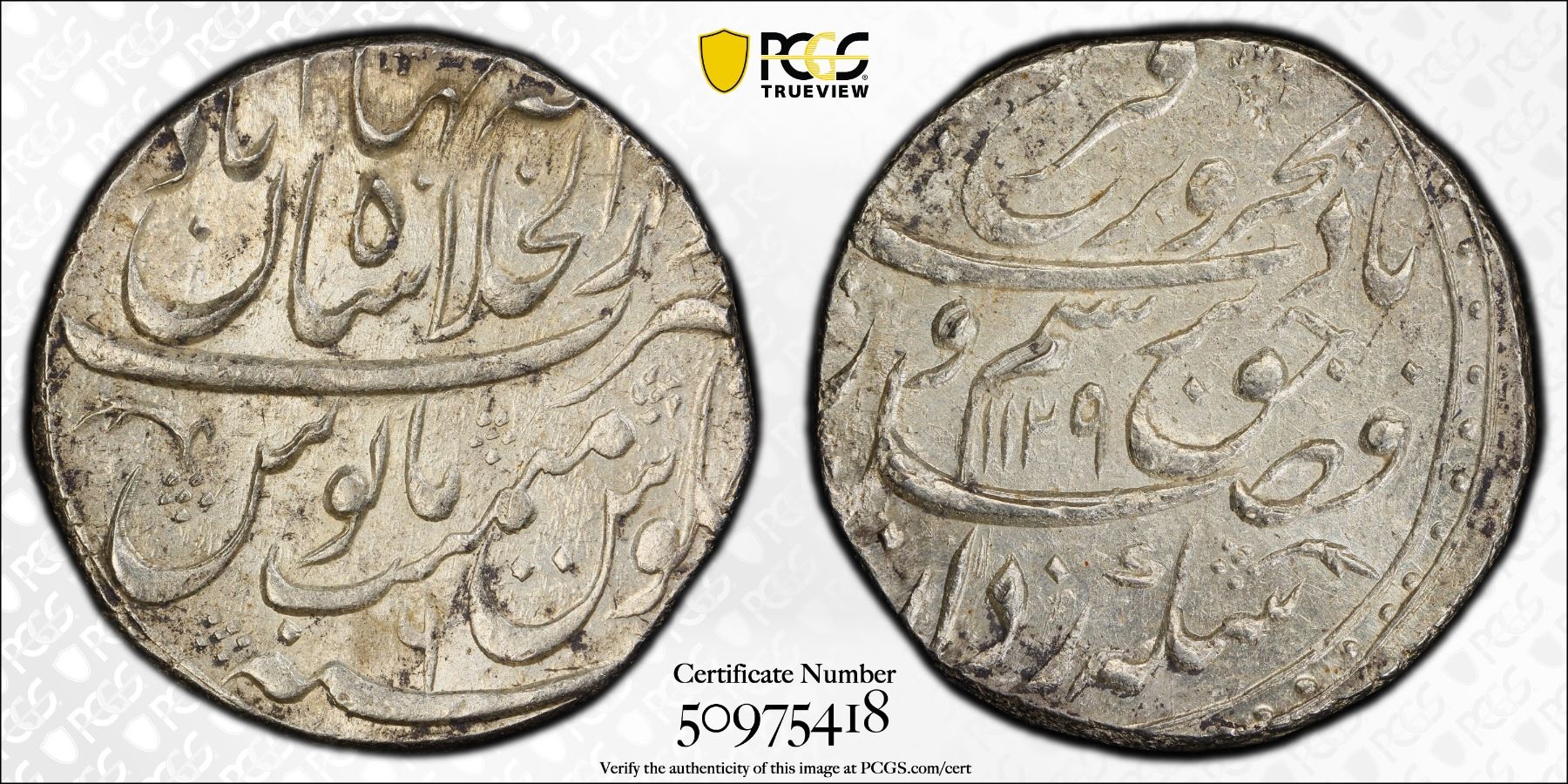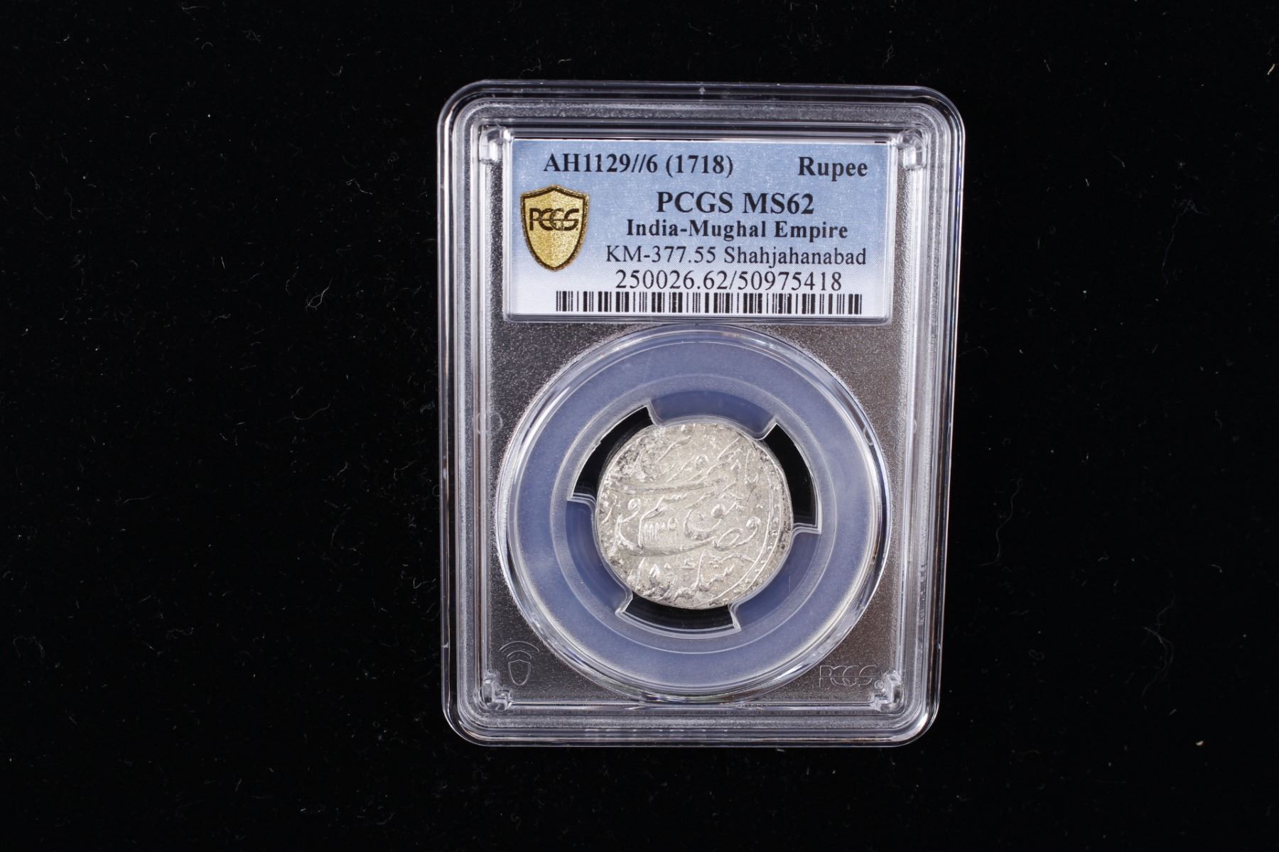 MUGHAL: Farrukhsiyar, 1713-1719, AR rupee, Shahjahanabad, AH1129 year 6, PCGS MS62