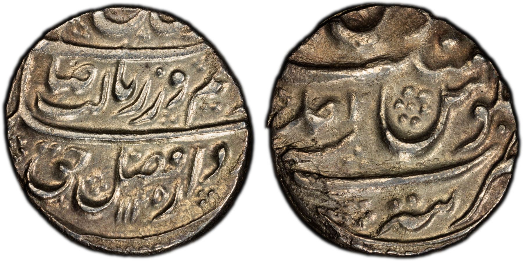 MUGHAL: Farrukhsiyar, 1713-1719, AR rupee, Tatta, AH1125 year 1, KM-376, with special couplet, naming Ahmad as sahib qiran salis, "the third lord of the auspicious conjunction", phrase used only for this mint & year, without any testmarks, lightly tooled, PCGS graded AU details.