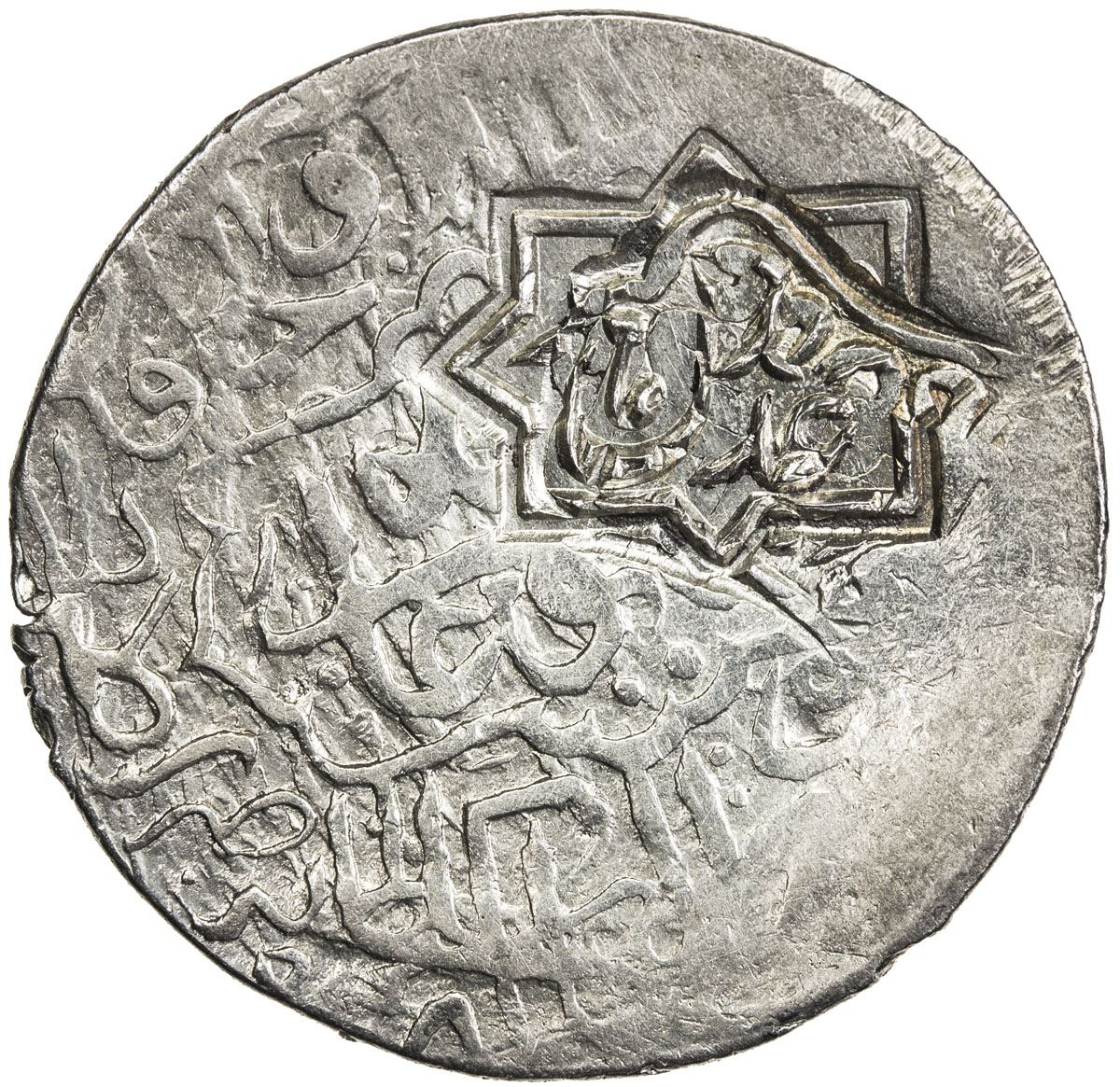 MUGHAL: Humayun, 1530-1556, AR shahrukhi (4.68g), Kabul, ND, A-B2424, countermarked 'adl-i qandahar in octagram, over another almost completely obliterated and unreadable countermark, AU countermark on VF host, RR.