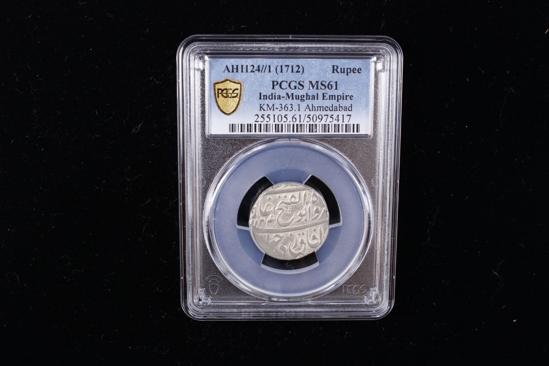 MUGHAL: Jahandar, 1712-1713, AR rupee, Ahmadabad, AH1124 year 1, PCGS MS61