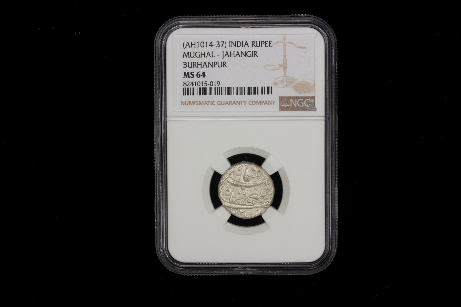 MUGHAL: Jahangir, 1605-1628, AR rupee, Burhanpur, ND, NGC MS64