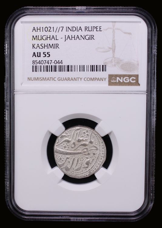 MUGHAL: Jahangir, 1605-1628, AR rupee, Kashmir, AH1021 year 7, KM-145.10, NGC graded AU55, RR.