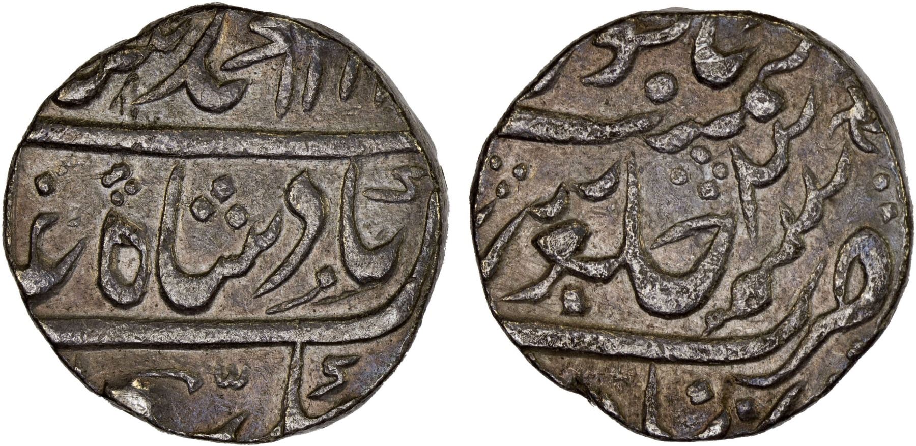 MUGHAL: Muhammad Shah, 1719-1748, AR rupee (11.09g), year 3, KM-436.x, undeciphered mint name; local regional style, possibly a mint of the Marathas or the Hyderabad Feuditories, VF-XF, RR.
