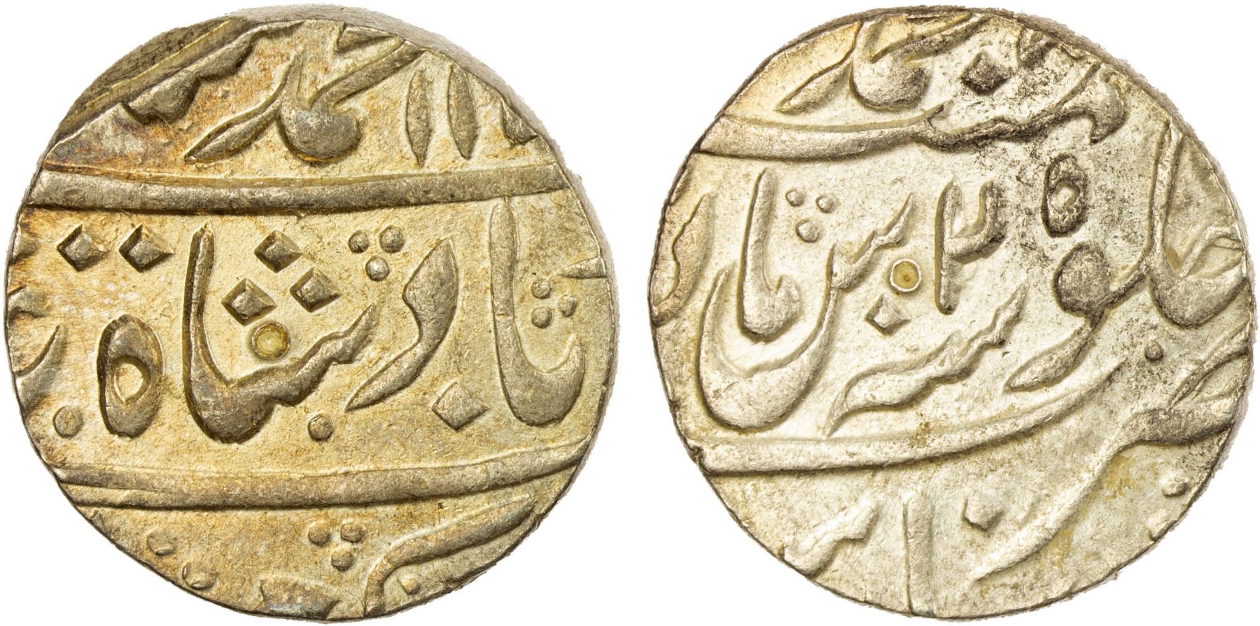 MUGHAL: Muhammad Shah, 1719-1748, AR rupee (11.38g), Muhammadabad Banaras, year 25, KM-436.15, single shroff mark, lustrous fields, AU. From a small hoard of high quality examples, nearly mint state, all dated regnal years 24 to 31.