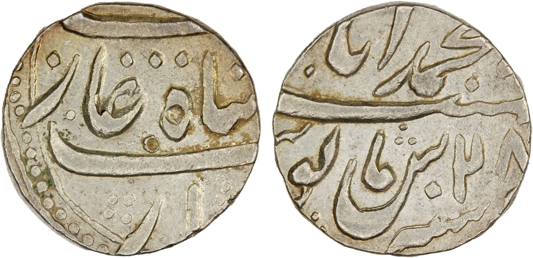 MUGHAL: Muhammad Shah, 1719-1748, AR rupee (11.39g), Muhammadabad Banaras, year 28, KM-436.15, single shroff mark, lustrous fields, AU. From a small hoard of high quality examples, nearly mint state, all dated regnal years 24 to 31.