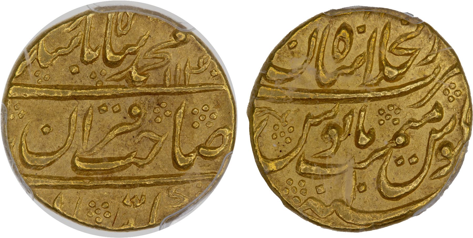 MUGHAL: Muhammad Shah, 1719-1748, AV mohur, Shahjahanabad (Delhi), AH1140 year 10, PCGS AU58