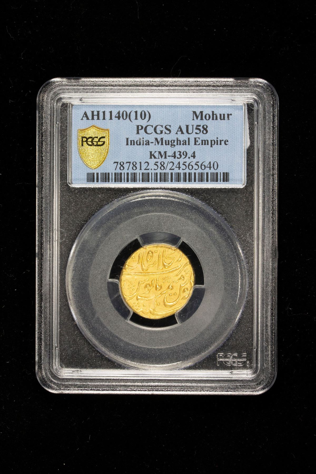 MUGHAL: Muhammad Shah, 1719-1748, AV mohur, Shahjahanabad (Delhi), AH1140 year 10, KM-439.4, bold strike, PCGS graded AU58.