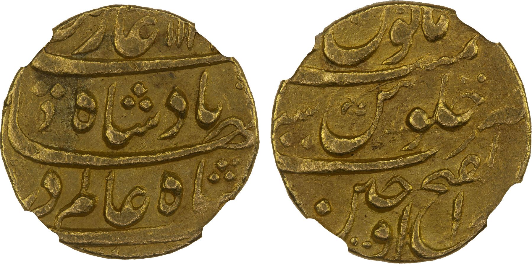 MUGHAL: Shah Alam Bahadur, 1707-1712, AV mohur, Ujjain, DM, KM-356.16, with the mint epithet Dar al-Fath, NGC graded AU55.