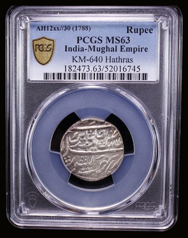 MUGHAL: Shah Alam II, 1759-1806, AR rupee (11.16g), Hathras, year 3, PCGS MS63