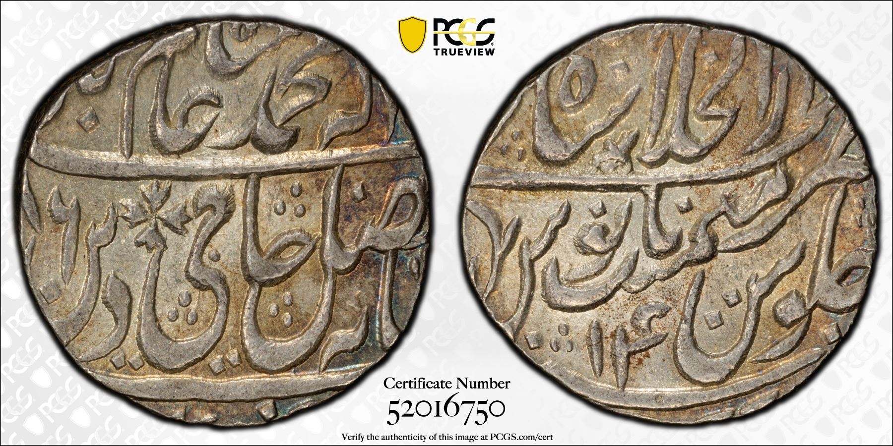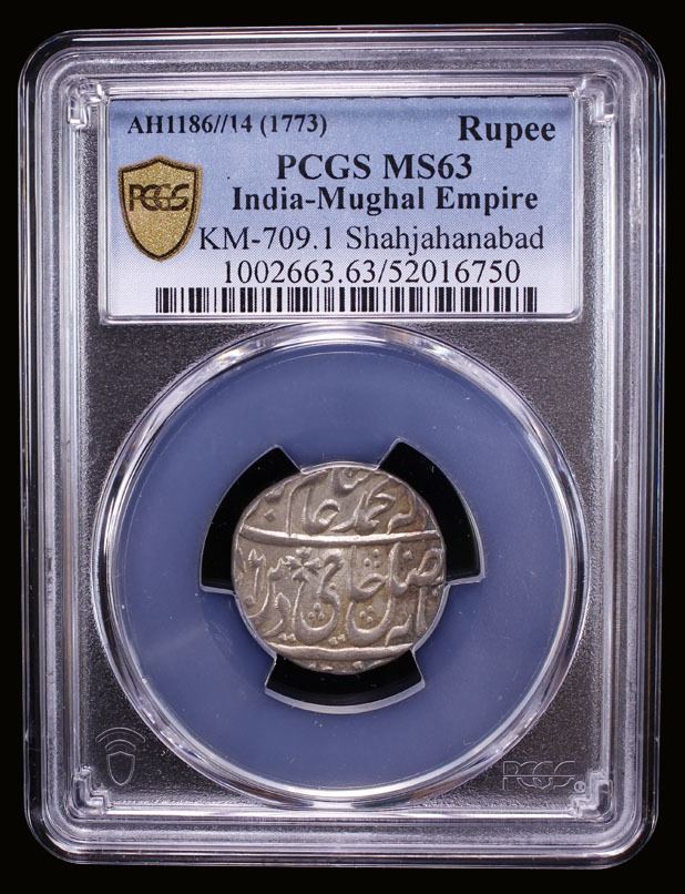 MUGHAL: Shah Alam II, 1759-1806, AR rupee (11.29g), Shahjahanabad, AH1186 year 13, PCGS MS63