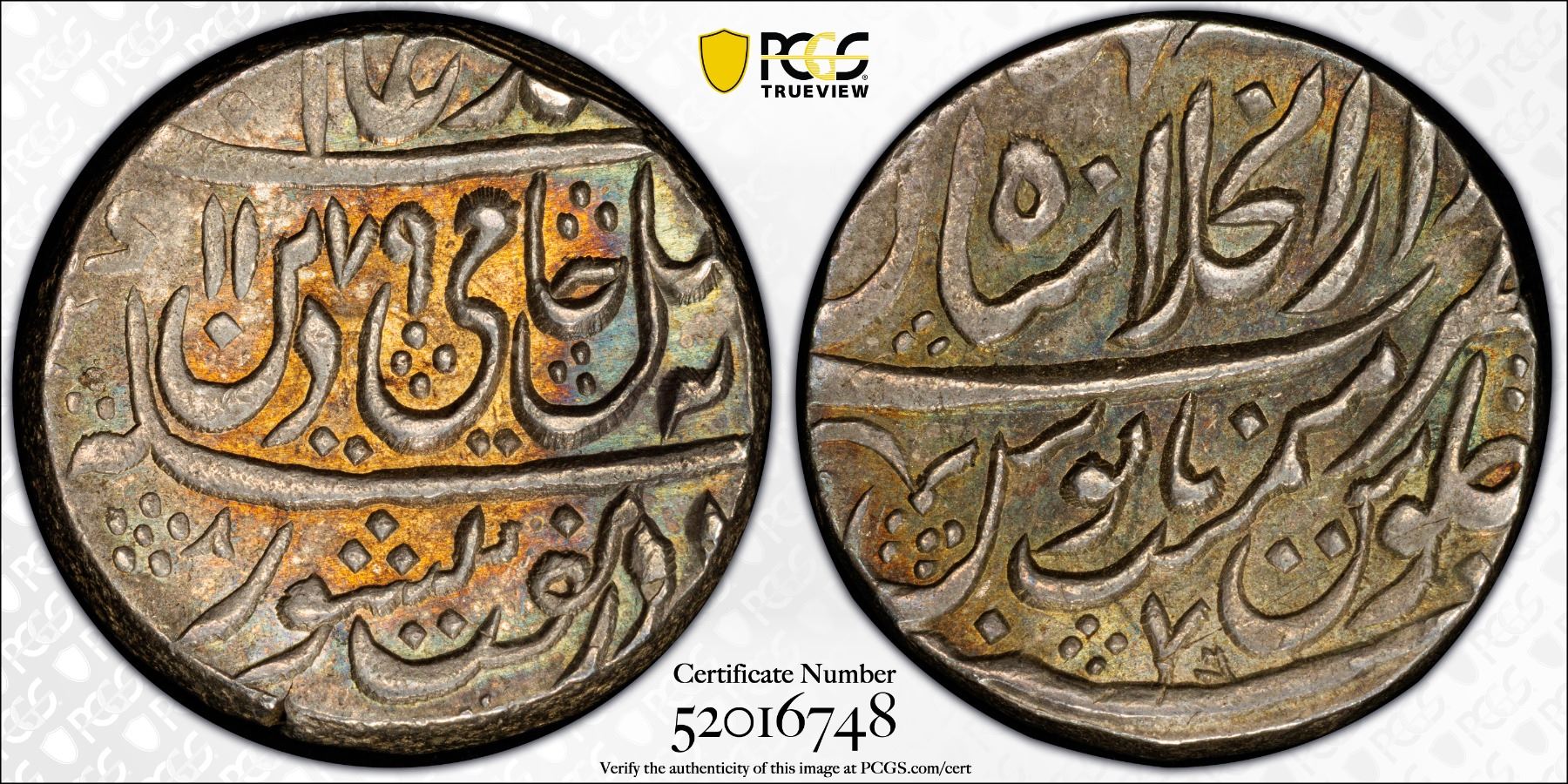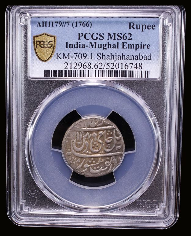 MUGHAL: Shah Alam II, 1759-1806, AR rupee (11.35g), Shahjahanabad, AH1179 year 7, PCGS MS62