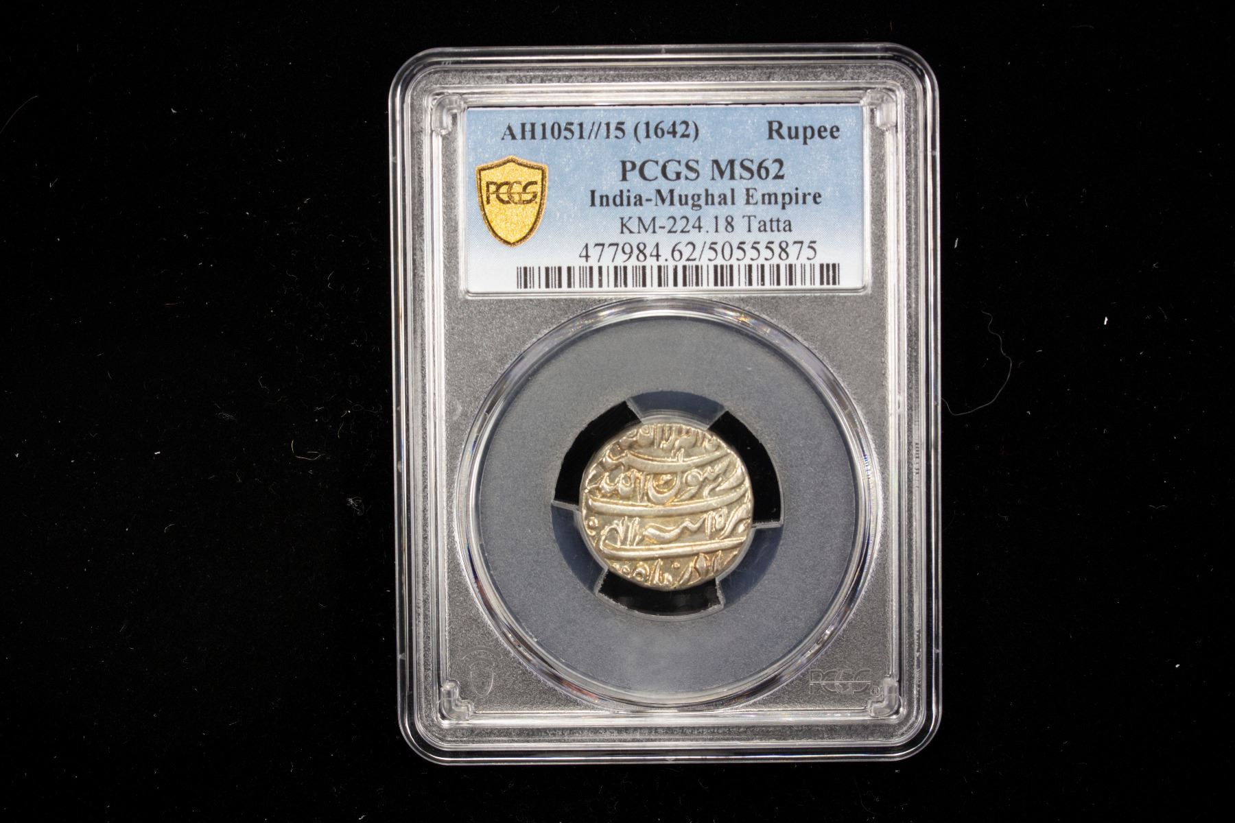 MUGHAL: Shah Jahan I, 1628-1658, AR rupee, Tatta, AH1051 year 15, Azar, KM-224.18, a pleasing mint state example, PCGS graded MS62.