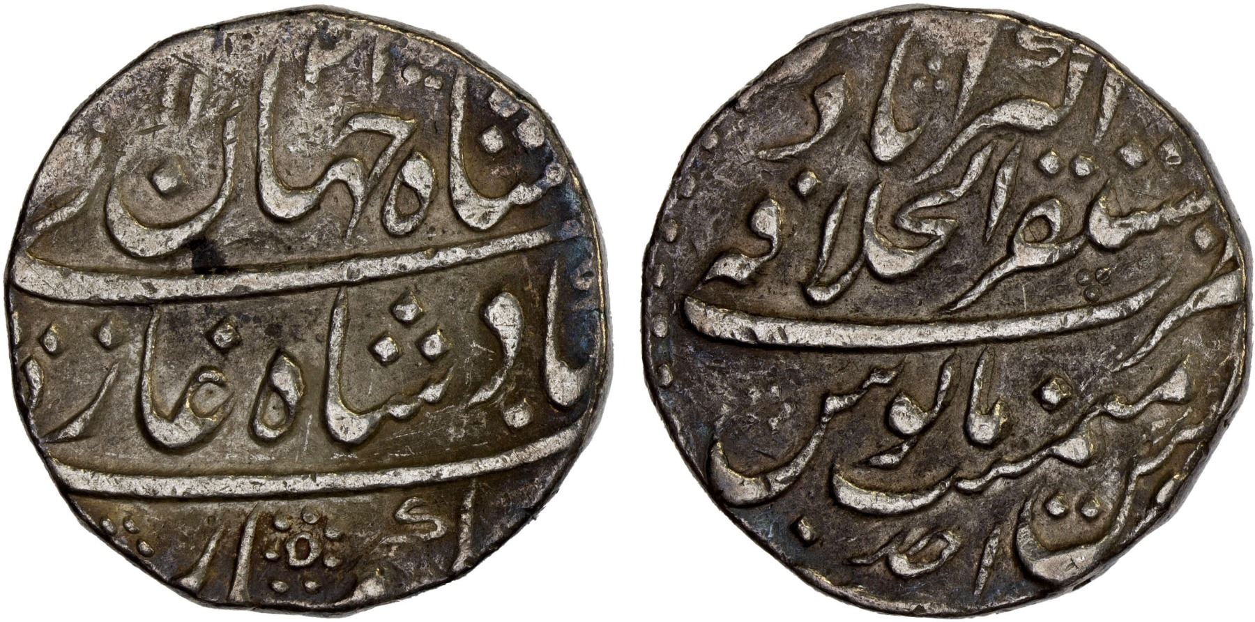 MUGHAL: Shah Jahan II, 1719, AR rupee (11.3g), Akbarbad, AH1131 year one (ahad), KM-415.3, with the mint epithet mustaqirr al-khilafat, strong VF.