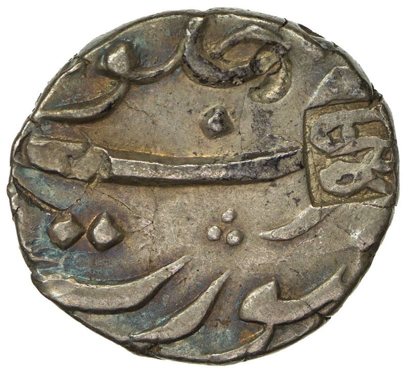 MUGHAL: Shah Jahan III, 1759-1760, AR ½ rupee (5.73g), Surat, DM, KM-470.2, clear mint name, 2 banker's marks, one of which is the word sri in fine calligraphy, VF to EF, R.