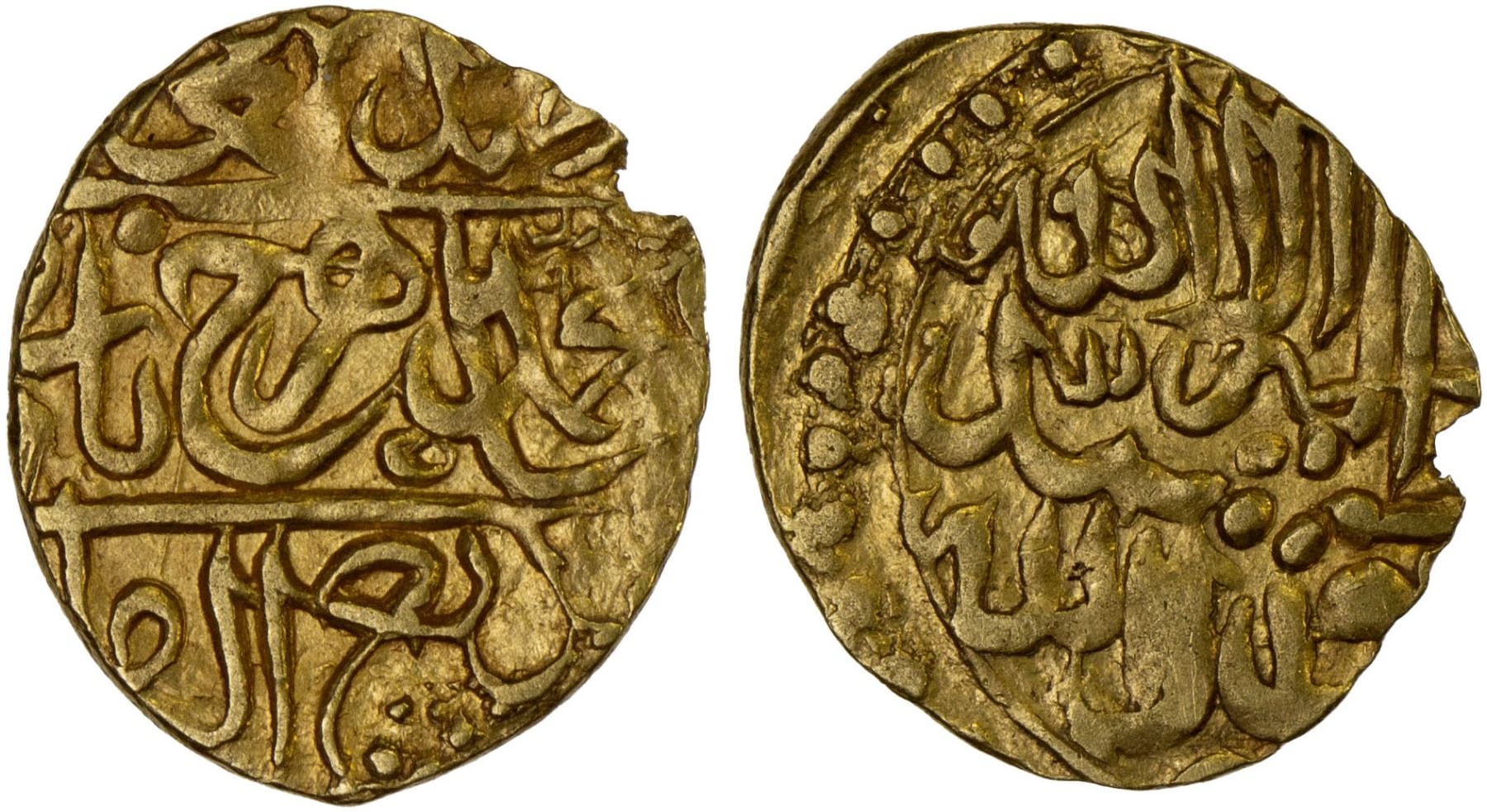 MUGHAL: Shahrukh III, 1575-1579, AV 1/12 Indian mohur (0.93g), [Badakhshan], ND, A-2466.2, with the additional title badi' al-zaman below the obverse, VF-XF.