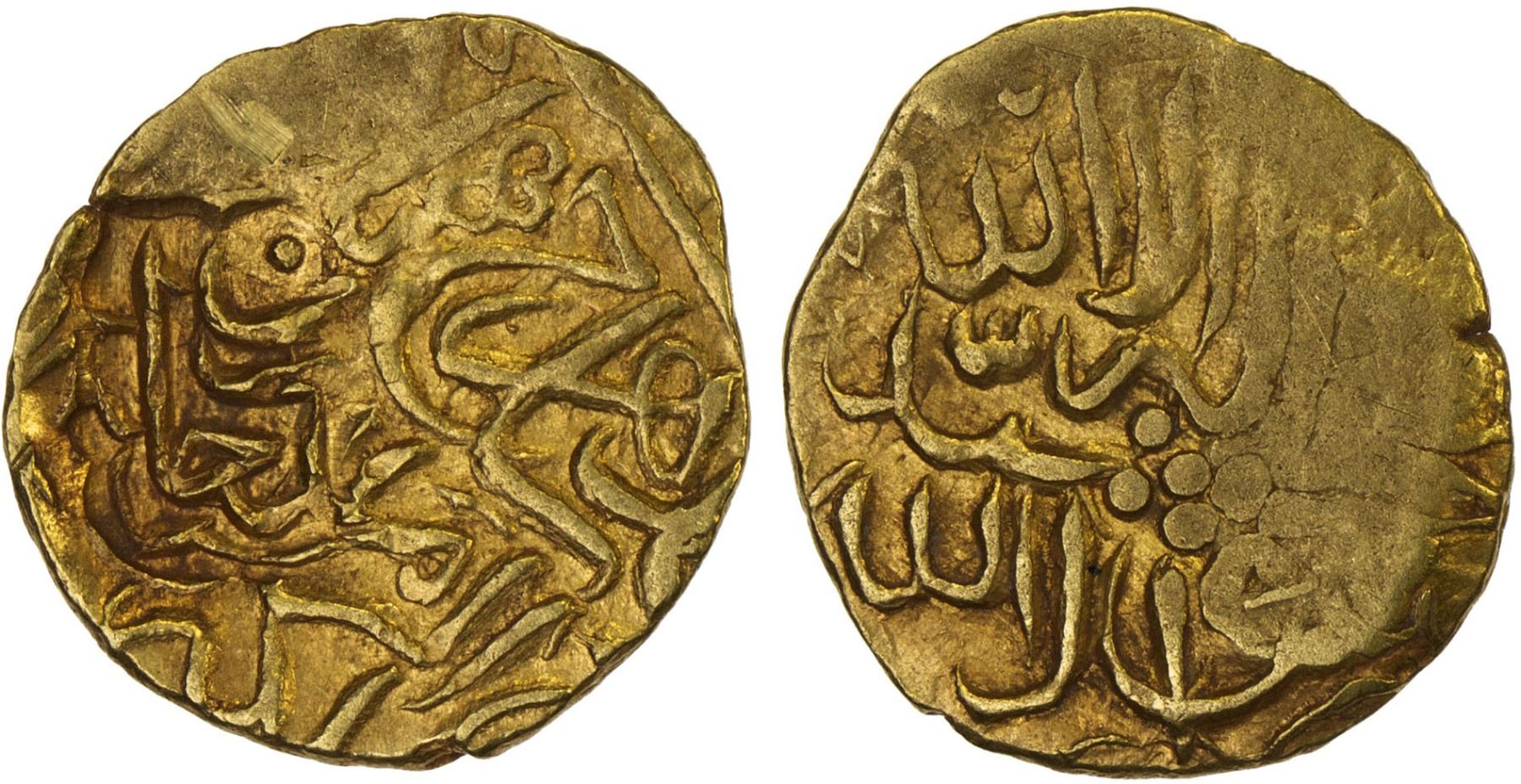 MUGHAL: Shahrukh III, 1575-1579, AV 1/12 Indian mohur (0.93g), [Badakhshan], ND, A-2466.2, with unusual countermark, ending in the word khân and the possibly name muhammad, might be early Janid, EF on VF host.