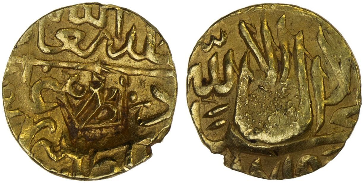 MUGHAL: Sulayman Mirza, 1529-1584, AV 1/8 ashrafi (0.54g), NM, ND, A-2464.3, with an uncertain countermark on the obverse, VF-XF, RR.