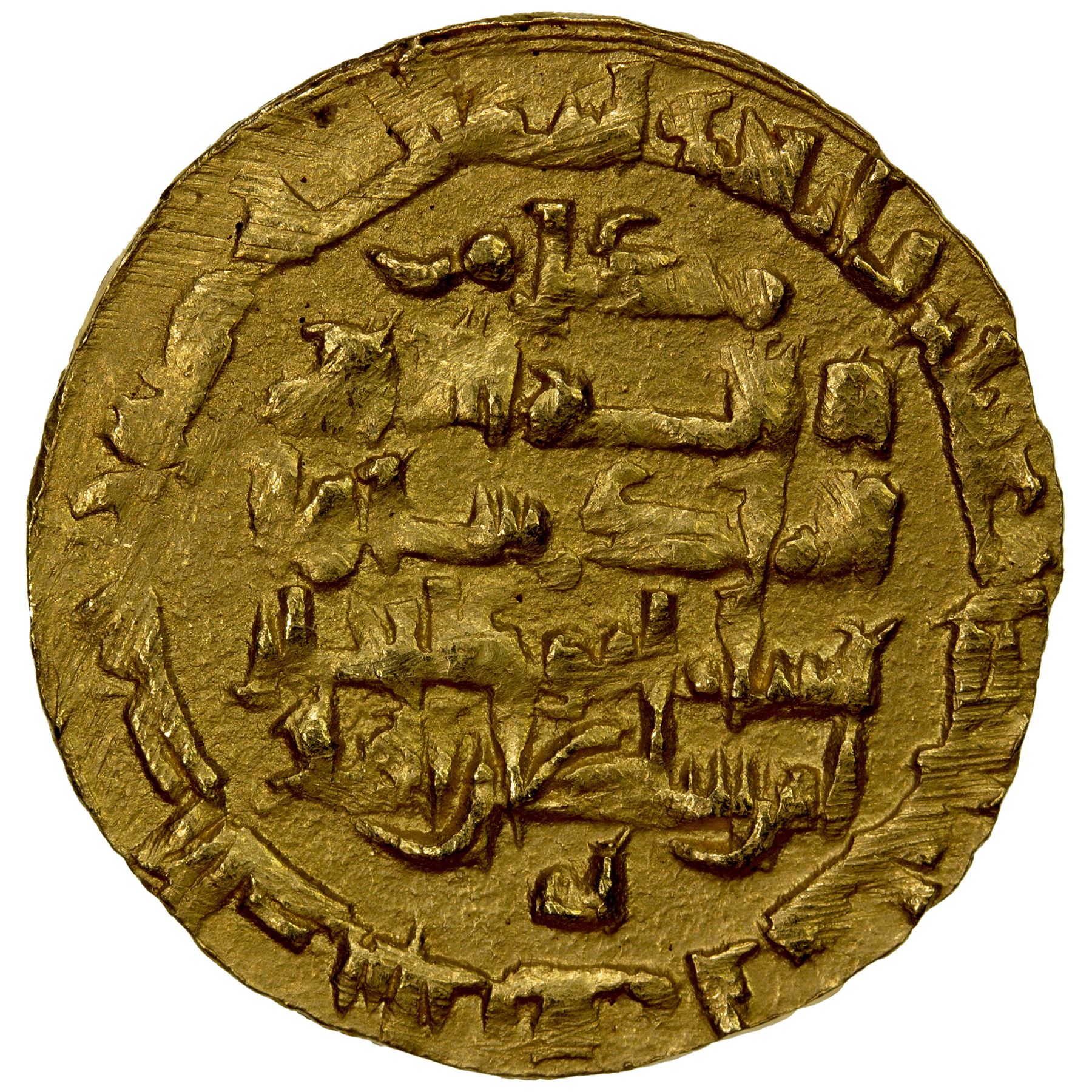 MUKRAMID: Nasir al-Din, 1020-1036, AV dinar (5.47g), 'Uman (Oman), AH421, A-1164, citing the Mukramid ruler as amir al-umarâ nasir al-din yamin al-dawla and citing the Buwayhid overlord Abu Kalijar on the obverse, average strike, EF, R.
