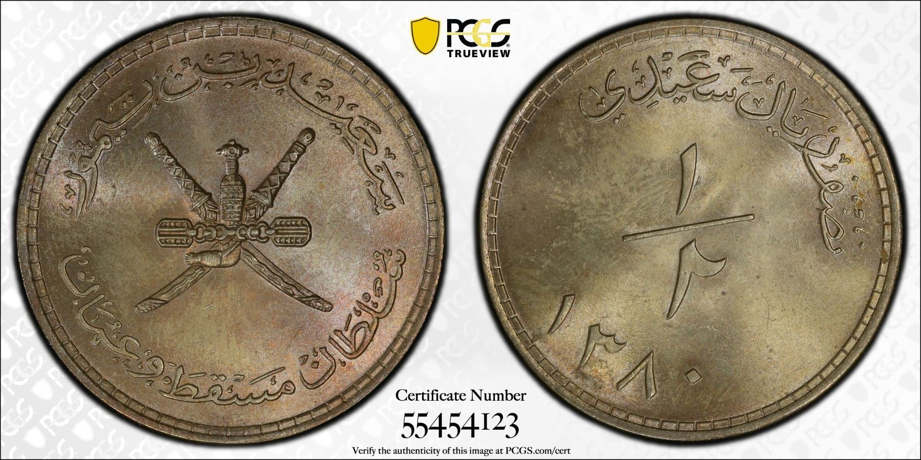 MUSCAT & OMAN: Sa'id ibn Taimur, 1932-1970, AR 1/2 saidi rial, AH1380, PCGS MS64