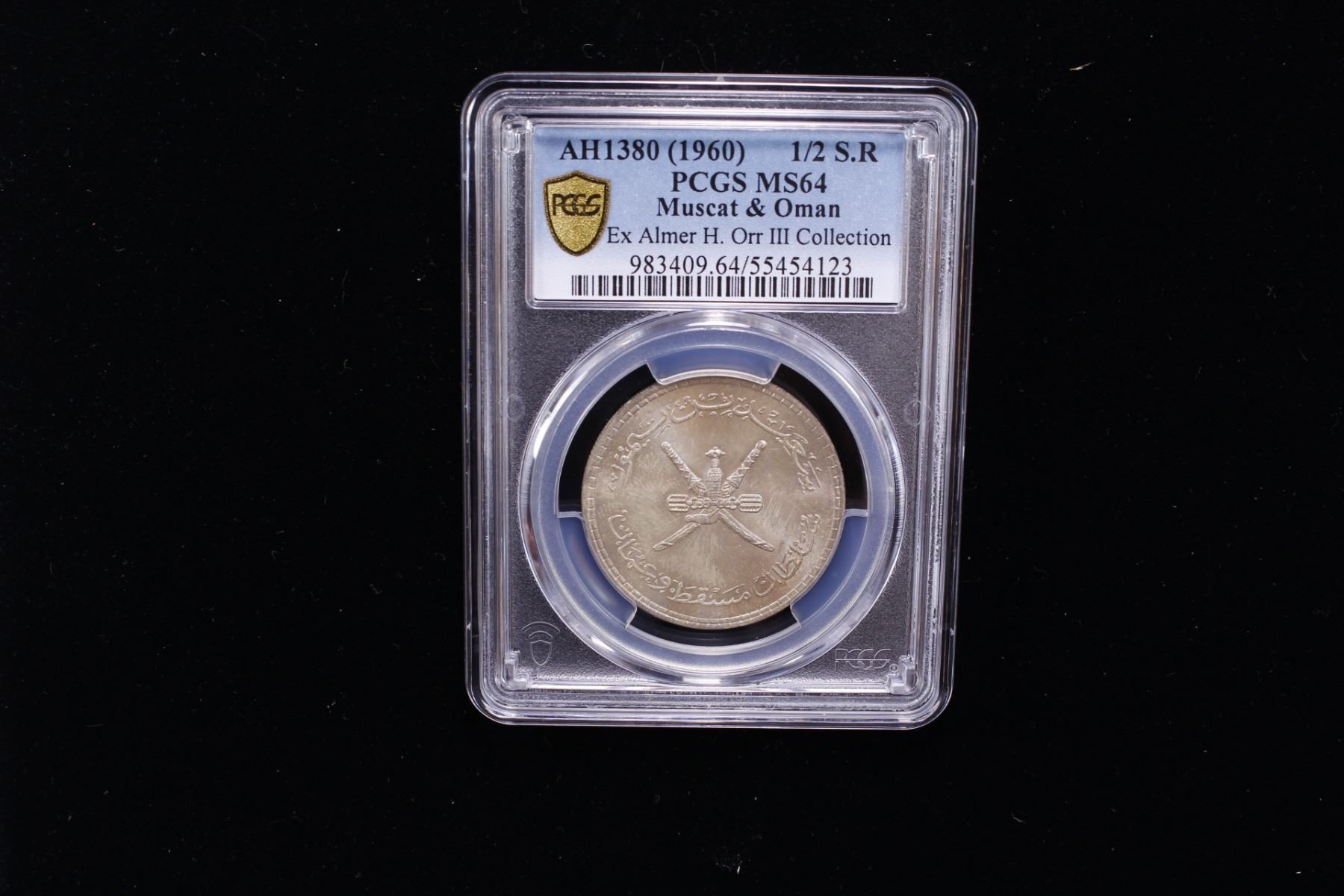 MUSCAT & OMAN: Sa'id ibn Taimur, 1932-1970, AR 1/2 saidi rial, AH1380, KM-34, Y-15, lightly toned, two-year type, PCGS graded MS64, ex Almer H. Orr III Collection.