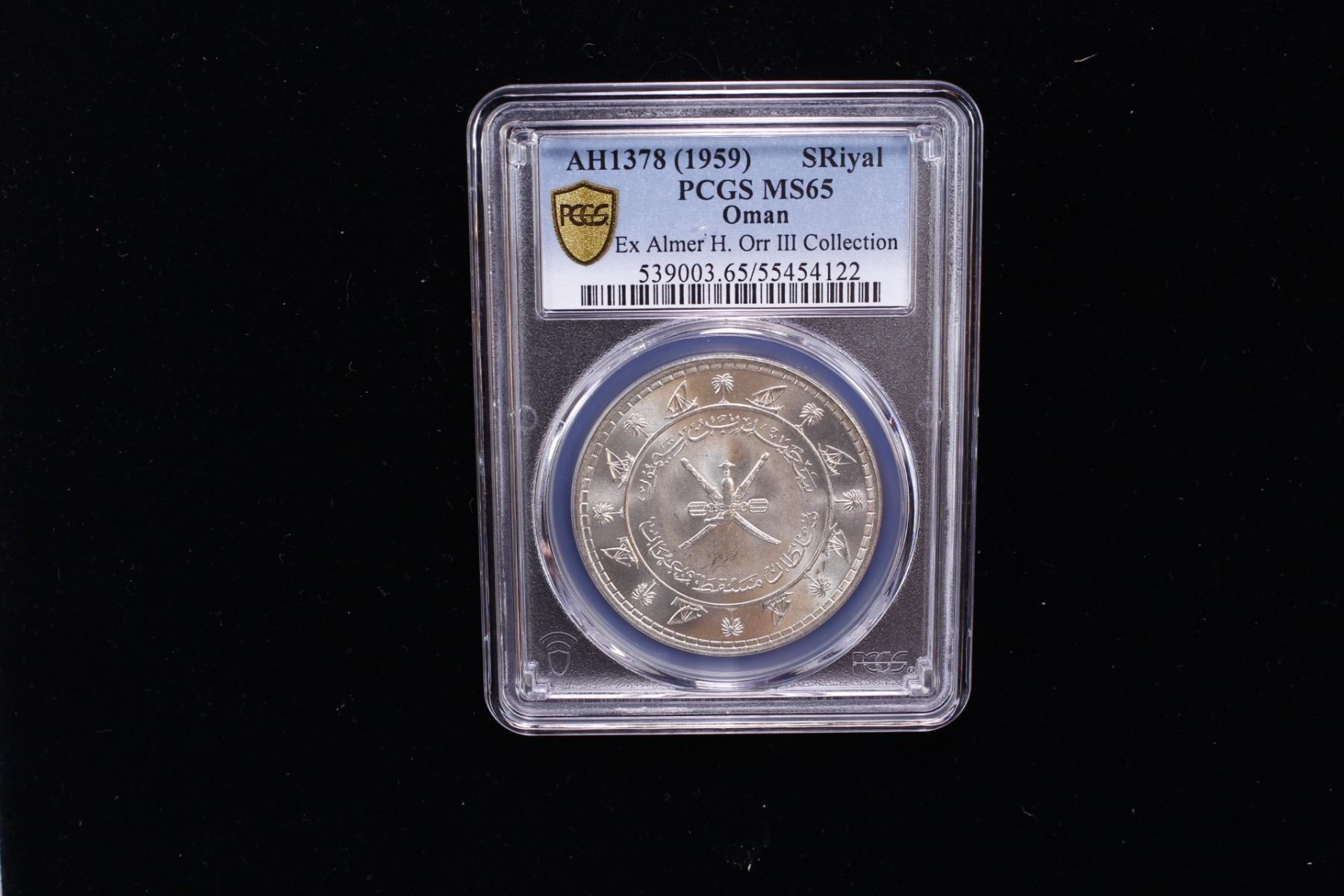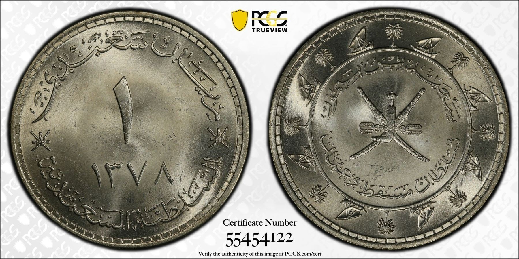 MUSCAT & OMAN: Sa'id ibn Taimur, 1932-1970, AR saidi rial, AH1378, KM-31, Y-12, blast white luster, one-year type, PCGS graded MS65, ex Almer H. Orr III Collection.