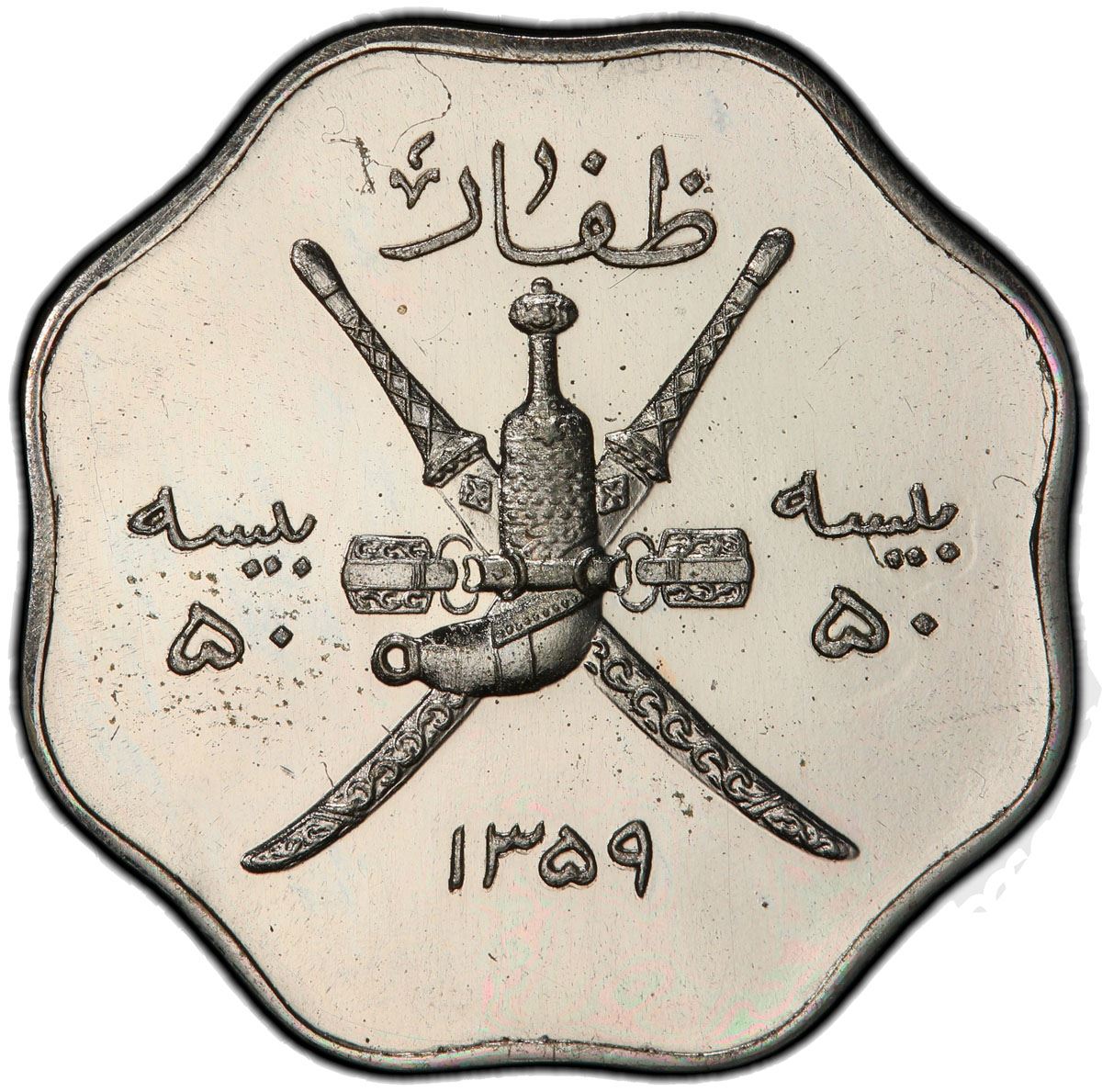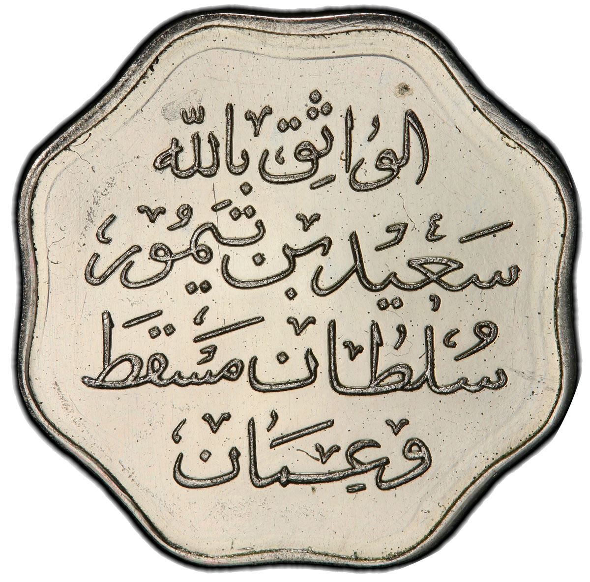 MUSCAT & OMAN: Sa 'ud b. Taimur, 1932-1970, 50 baisa, AH1359, KM-24, Bombay mint proof restrike, with original mint envelope labeled H.M. 's Mint (His Majesty 's Mint), PCGS graded Proof 64.