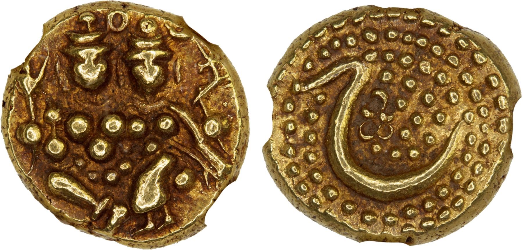 MYSORE: Haidar Ali, 1761-1782, AV pagoda, NM, ND, KM-15, Siva and Parvati seated facing // large Persian letter H (for Haidar) on a granular background, NGC graded EF45.