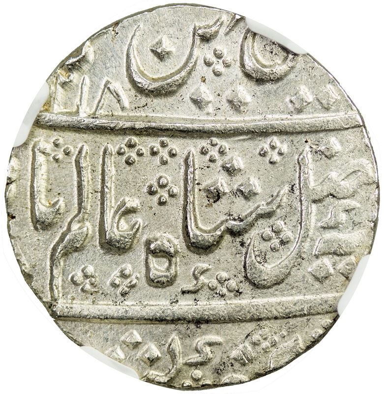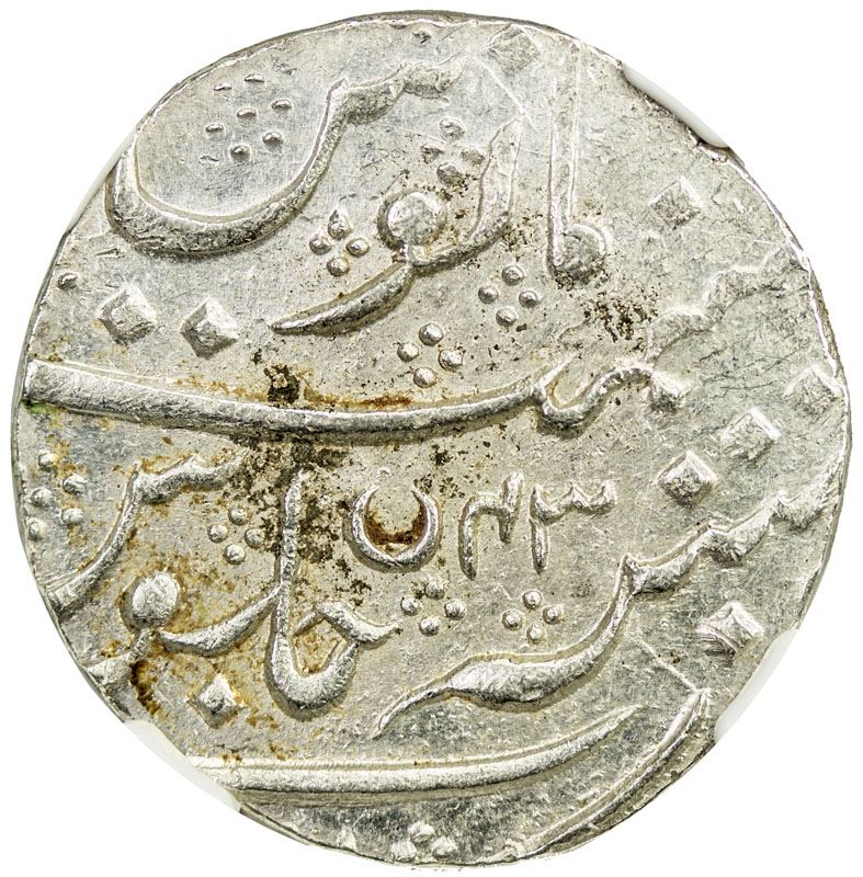 MYSORE: Krishna Raja Wodeyar, 1799-1868, AR rupee, Patan, AH1218 year 43, Cr-207, NGC graded MS62.