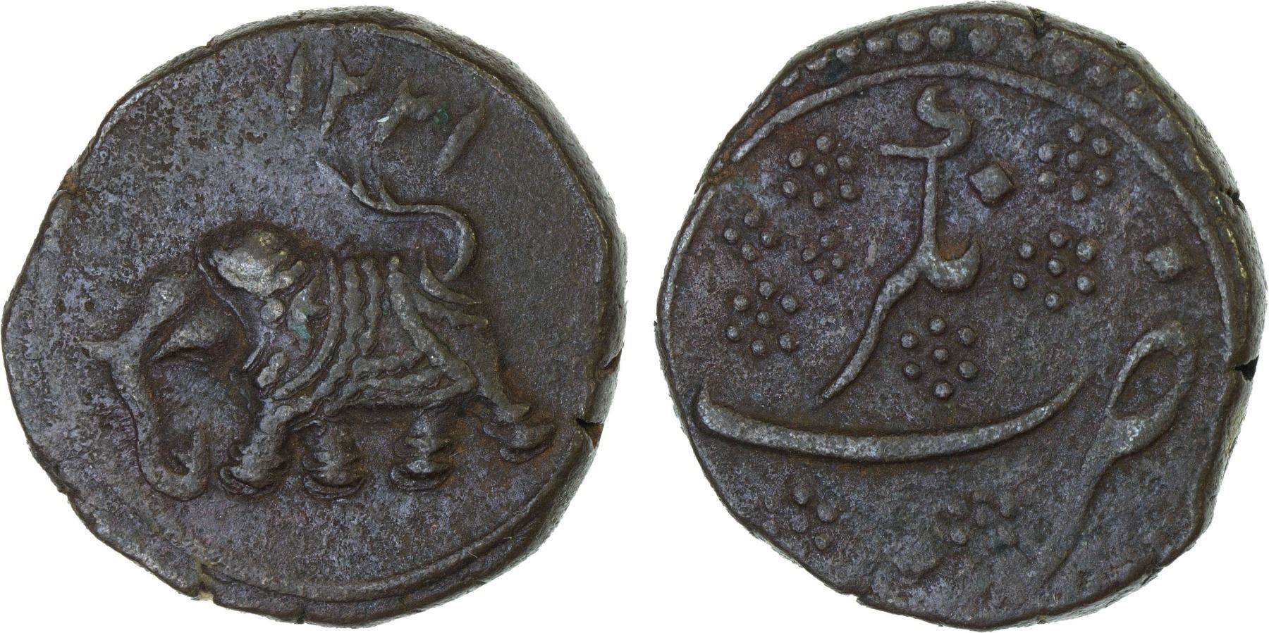 MYSORE: Tipu Sultan, 1782-1799, AE paisa (11.26g), Nagar, AM1221, KM-103.10, elephant left, date above, well-centered strike, wonderful VF.
