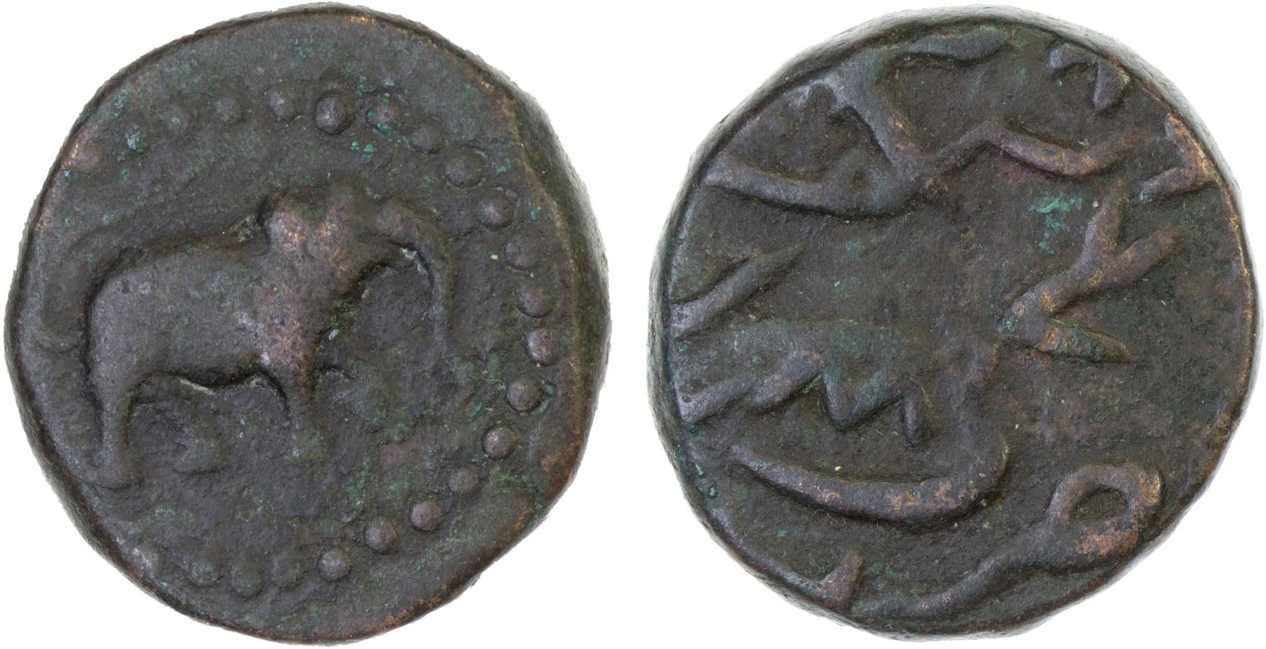 MYSORE: Tipu Sultan, 1782-1799, AE paisa (11.31g), Bandar Kalikut, ND, KM-43.3, elephant right, undated type, VF, ex Dr. Vincent John Adams Flynn Collection. This type is believed to be the earliest issue of Tipu Sultan struck at Calicut, then the capital of Malabar district. It contains the mint epithet 'bundar' (port). Although undated it is thought to have been struck in AH1198.