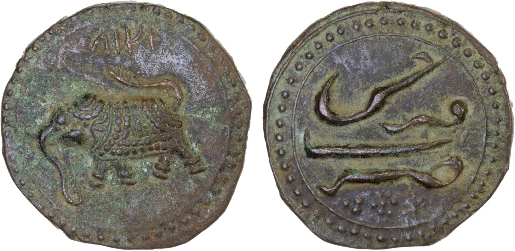 MYSORE: Tipu Sultan, 1782-1799, AE paisa (zohra) (11.34g), Farrukhi, AH1217, KM-53.2, elephant left, VF, ex Dr. Vincent John Adams Flynn Collection.