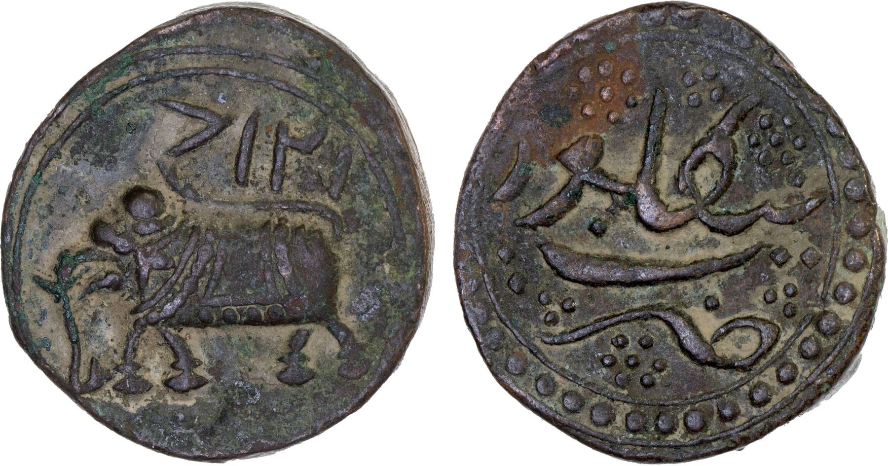 MYSORE: Tipu Sultan, 1782-1799, AE paisa (zohra) (11.35g), Bengalur, AM1217, KM-33.2, elephant left, VF, ex Dr. Vincent John Adams Flynn Collection.