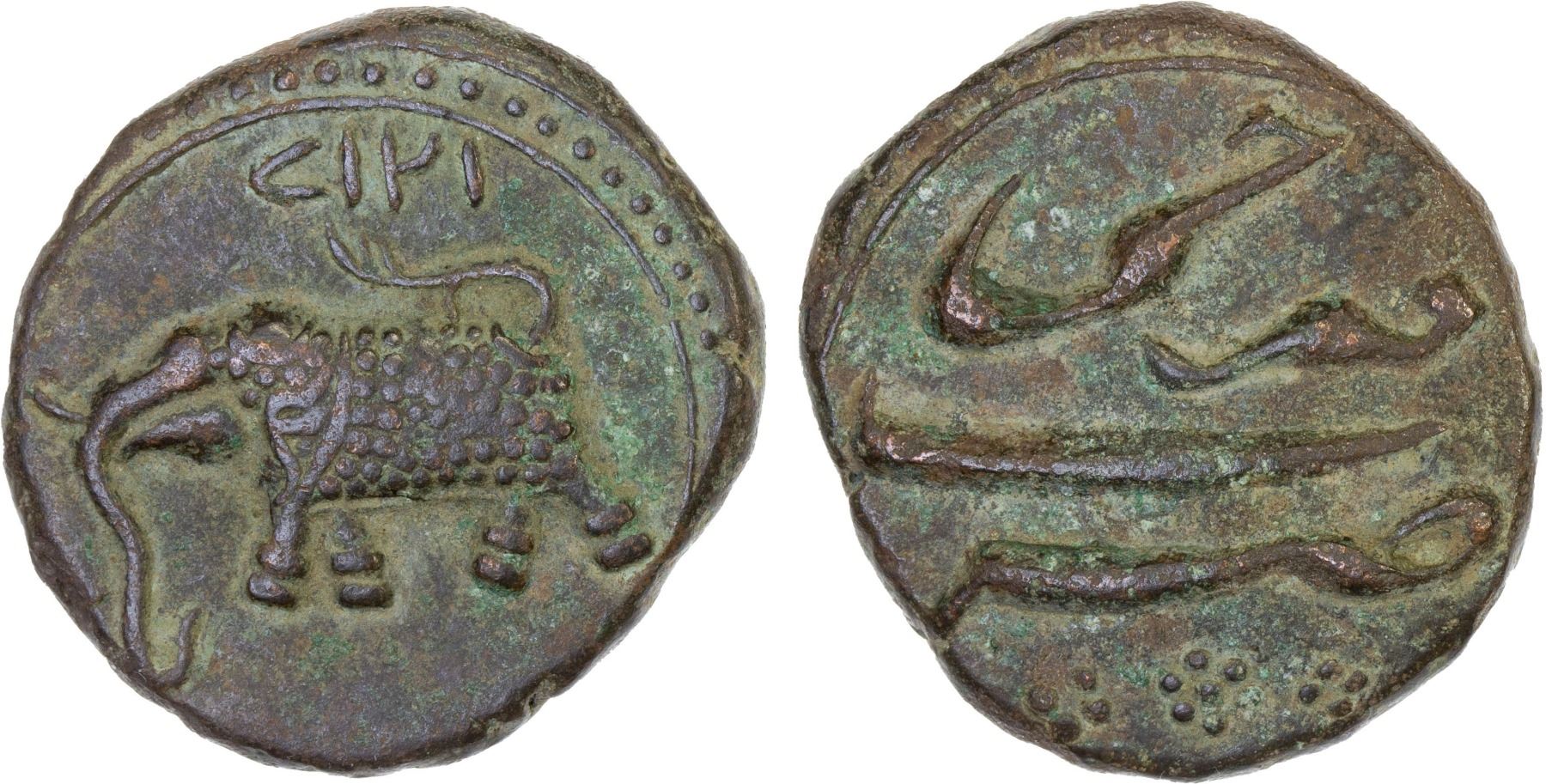 MYSORE: Tipu Sultan, 1782-1799, AE paisa (zohra) (11.49g), Farrukhi, AH1218, KM-53.2, elephant left, VF, ex Dr. Vincent John Adams Flynn Collection.