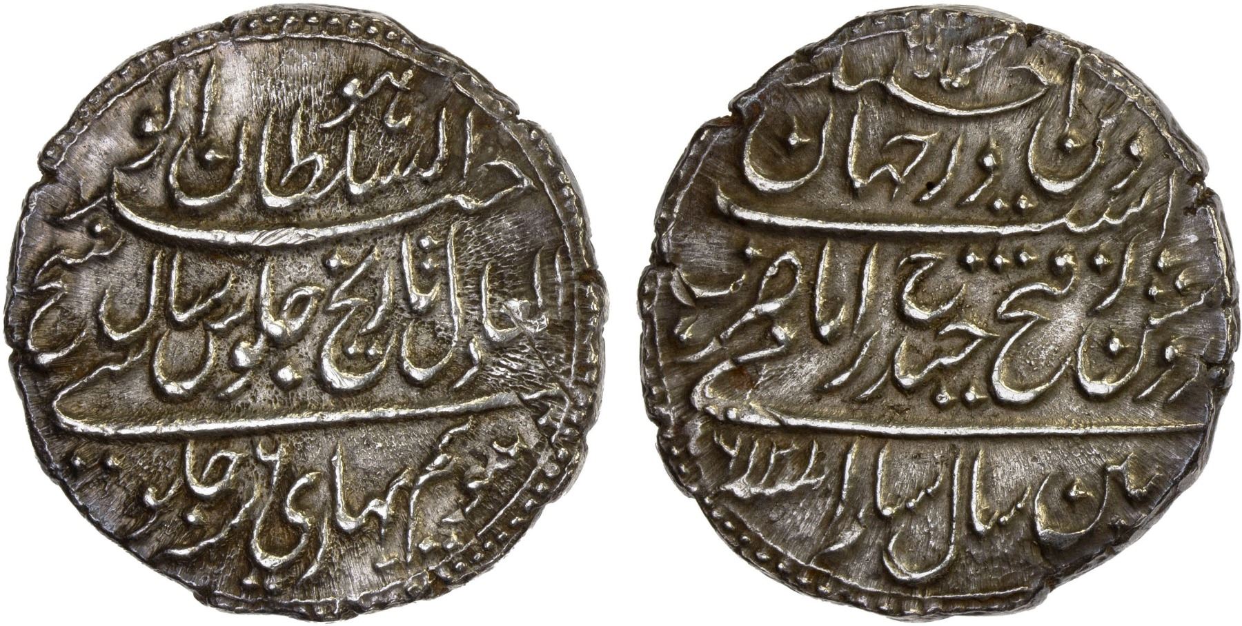 MYSORE: Tipu Sultan, 1782-1799, AR rupee (11.28g), Patan, AM1216 year 6, KM-126, bold strike, choice XF.