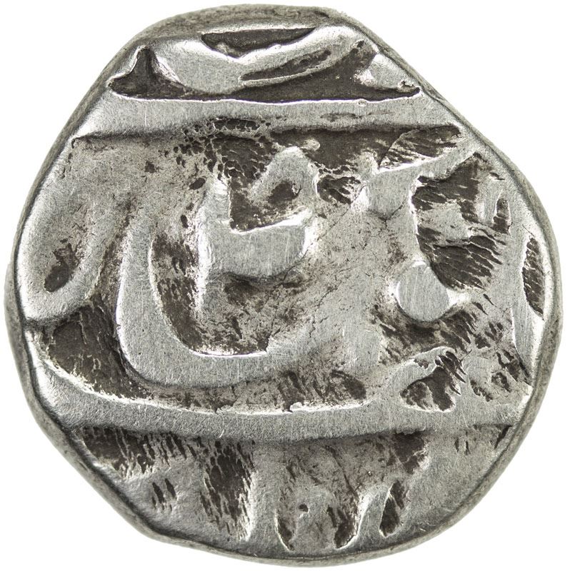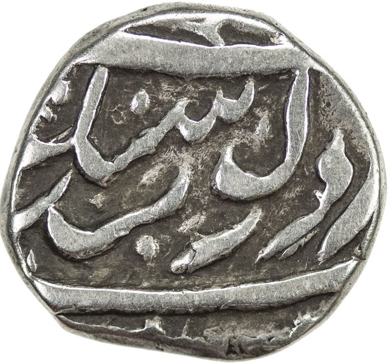 NABHA: Devinder Singh, 1840-1846, AR ½ rupee (5.42g), "Nabha", DM, Cr-—, SS-—, Gobind Shahi couplet, tentative attribution, said to be known dated VS1898 (1841/42), Very Good, RRR. Struck under Sikh authority.